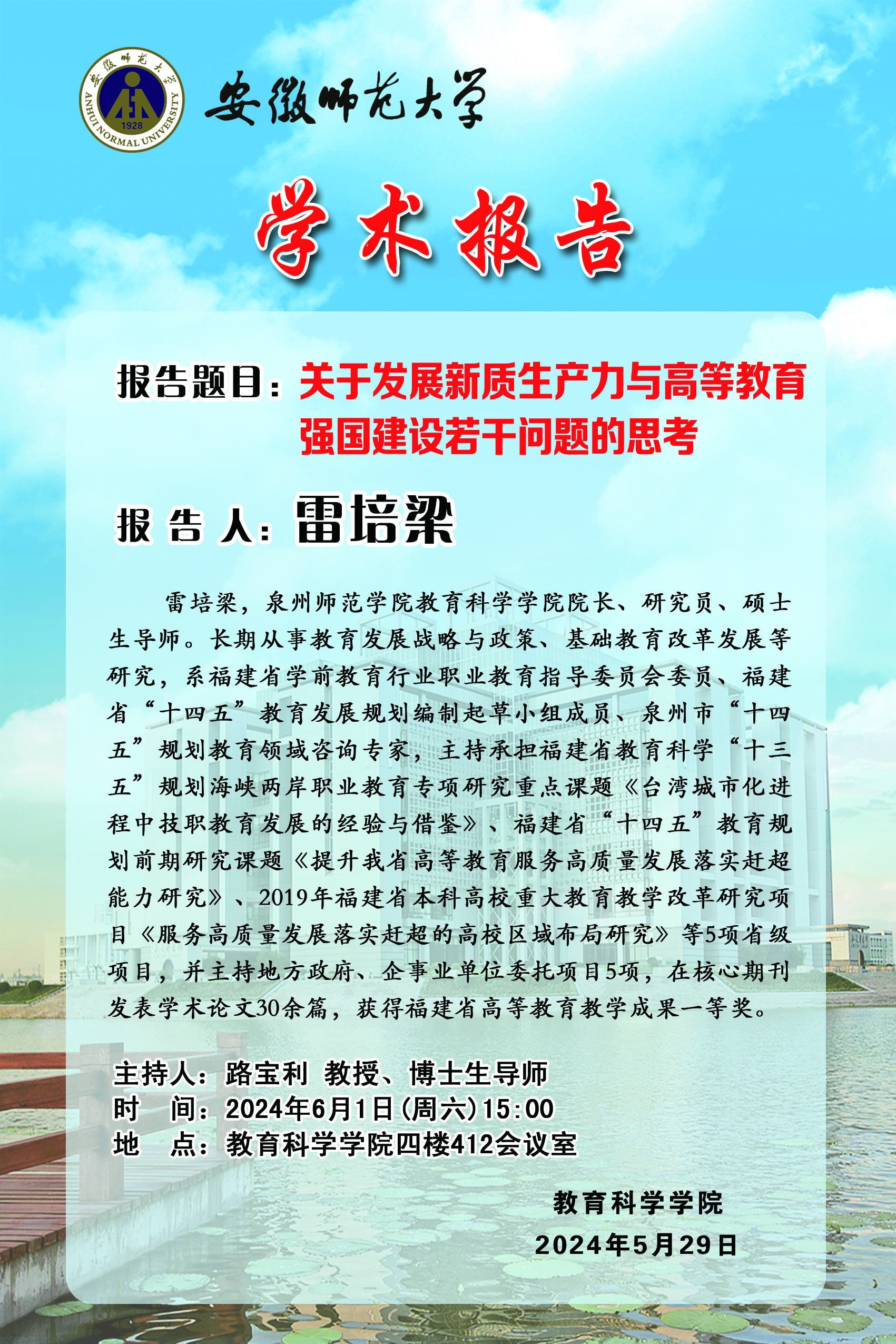 【学术预告】雷培梁:关于发展新质生产力与高等教育强国建设若干问题的思考