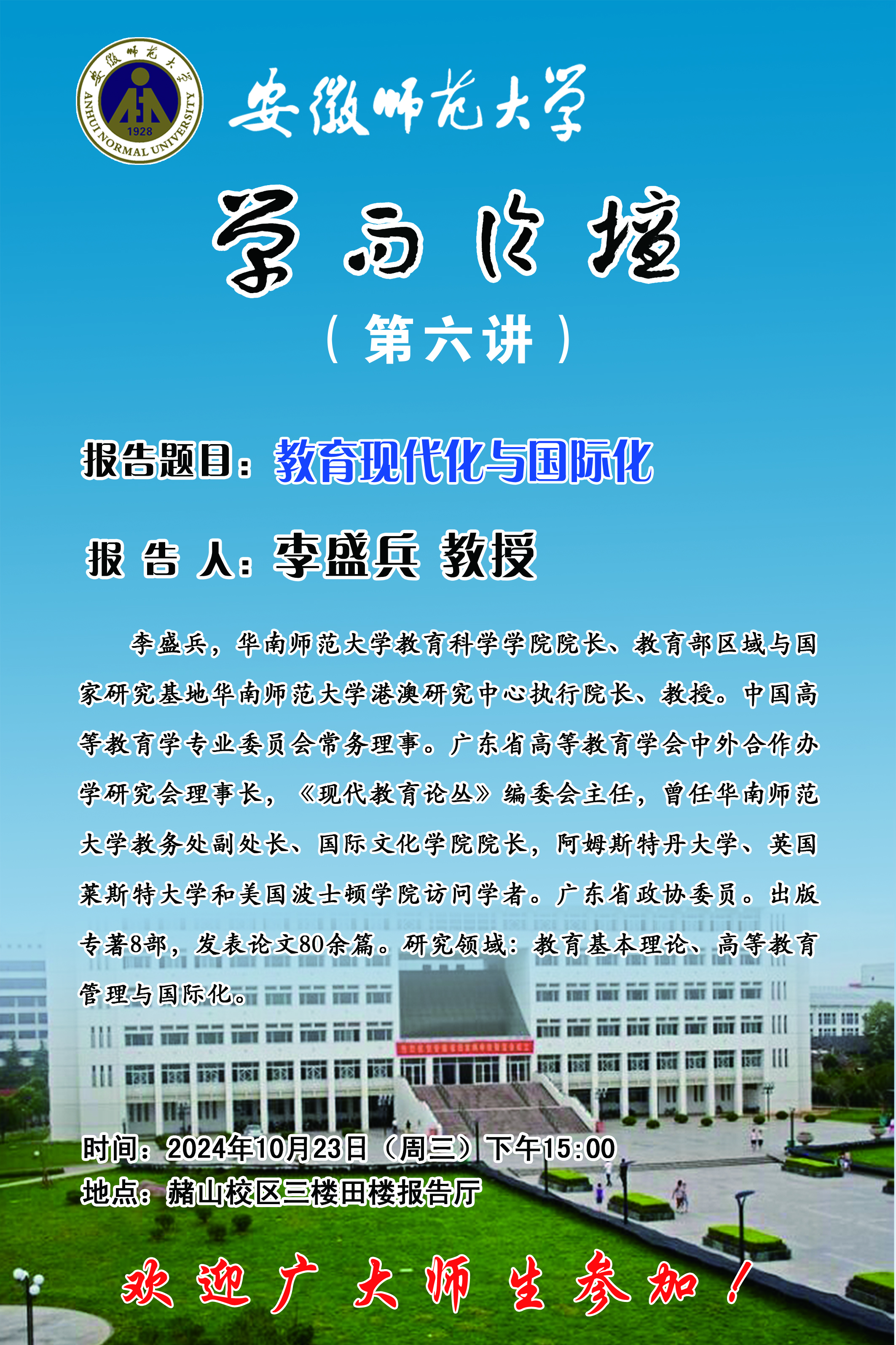 【学术预告】学而论坛第六讲——李盛兵:教育现代化与国际化
