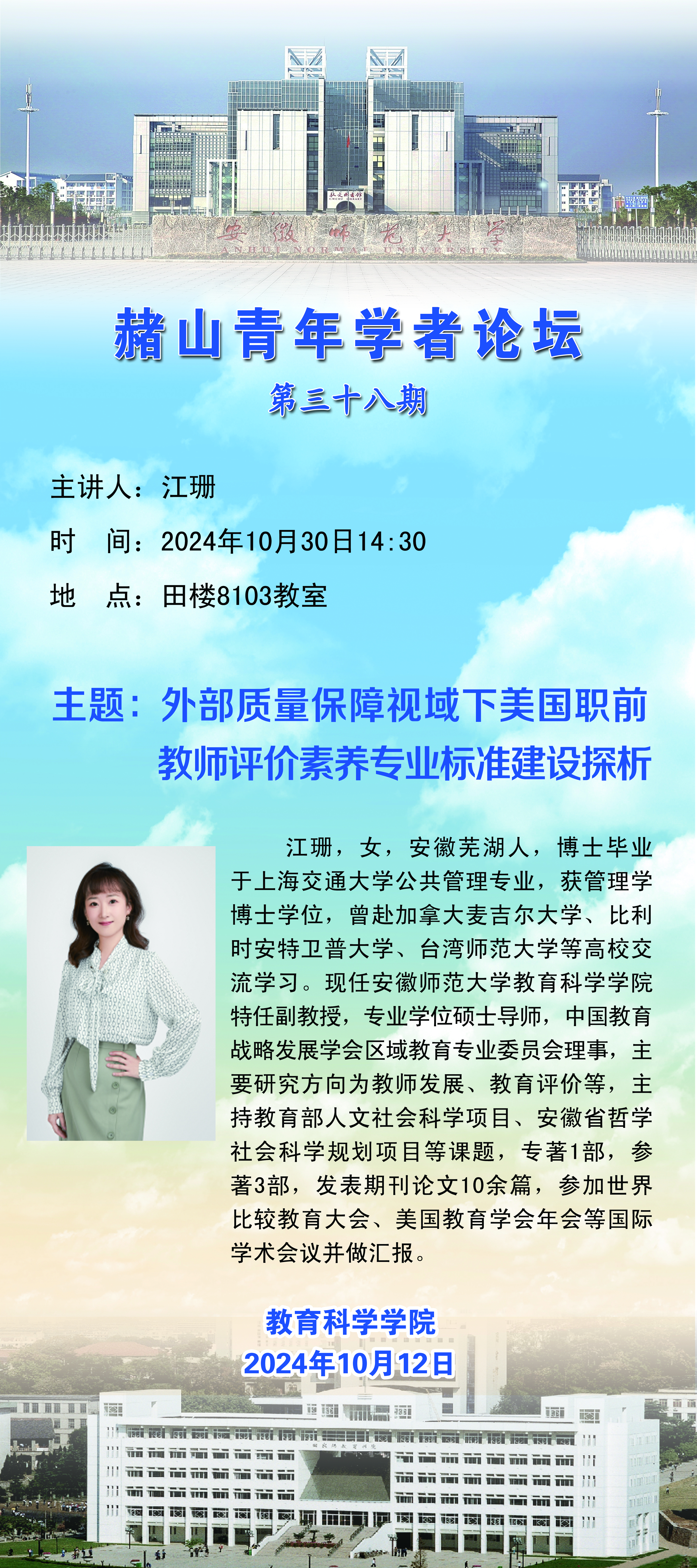 【学术预告】赭山青年学者论坛第三十八期——江珊:外部质量保障视域下美国职前教师评价素养专业标准建设探析