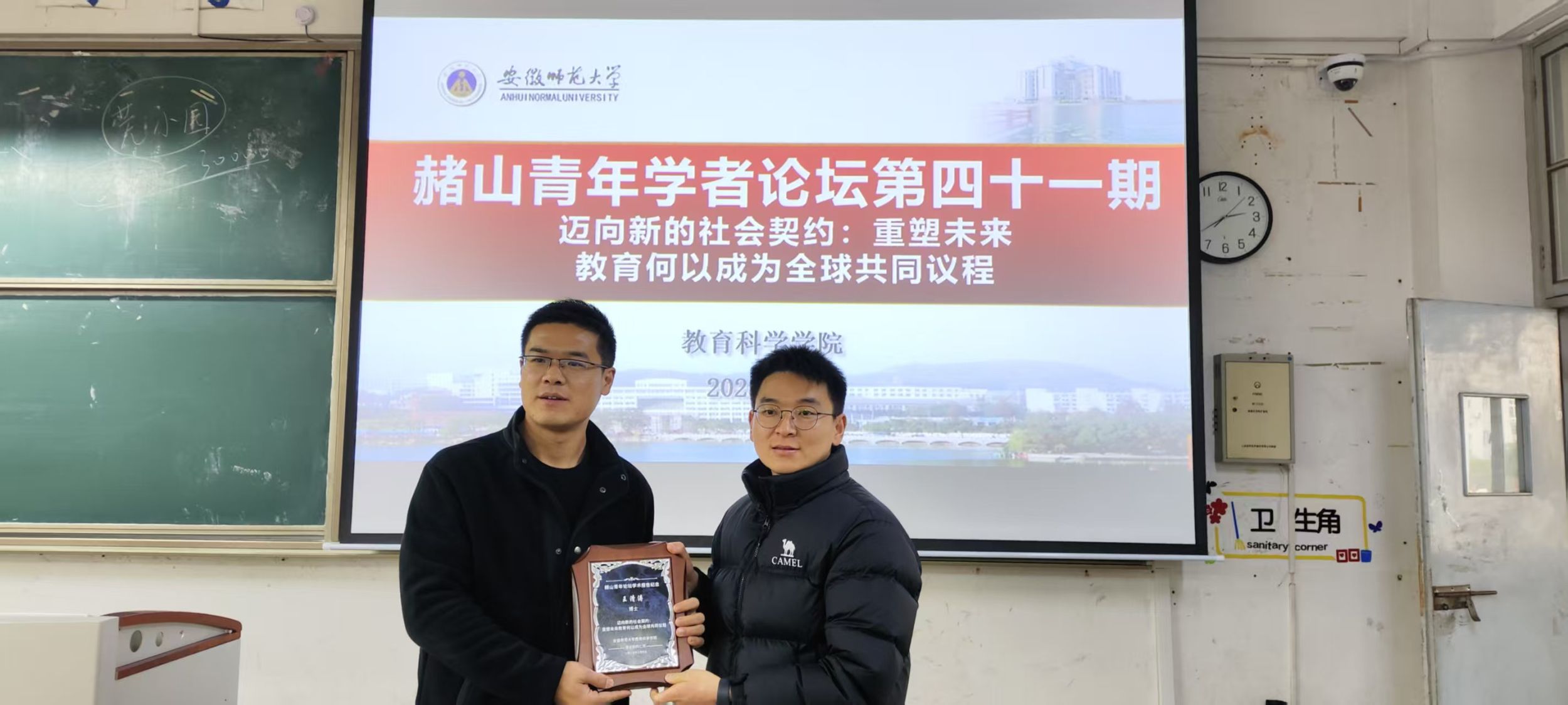 2025年3月5日下午,第四十一期“赭山青年学者论坛”在赭山校区田楼8101教室成功举办。本次论坛邀请公司青年教师王清涛博士担任主讲嘉宾,围绕“迈向新的社会契约:重塑未来教育何以成为全球共同议程”主题展开深度探讨。公司副经理吴文涛、研究生辅导员莫大贡、一二年级教育学研究生参加活动。讲座由2024级研究生谢欣主持。