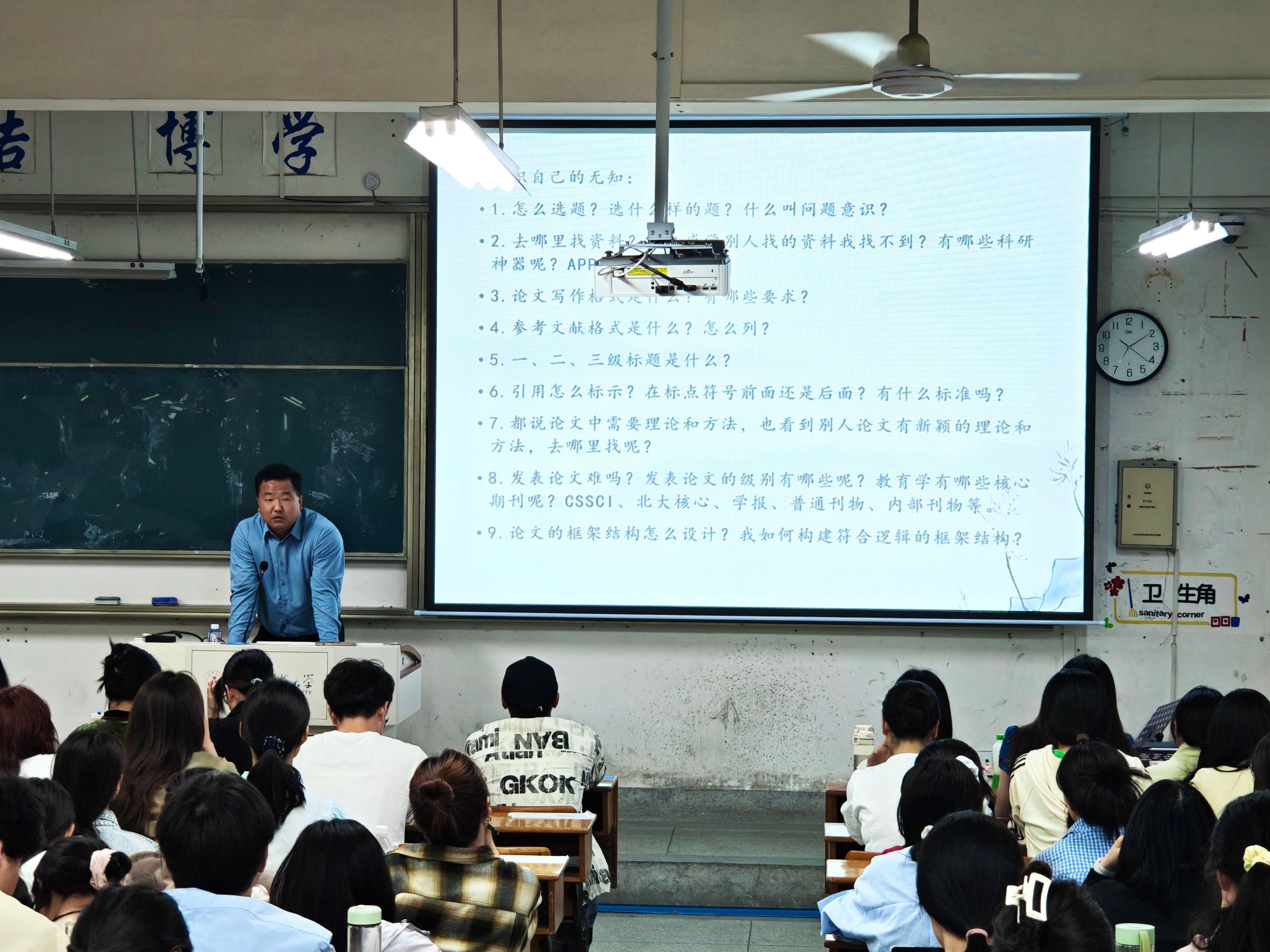 讲座伊始,王琳聚焦硕士论文写作的基础——格式规范,详细讲解了参考文献在著作、期刊、译著以及网站引用时的标准格式,从具体的书写规范到常见错误的纠正,让同学们对论文格式有了清晰且准确的认识。王琳强调,格式规范不仅是论文的门面,更是学术严谨性的直观体现。