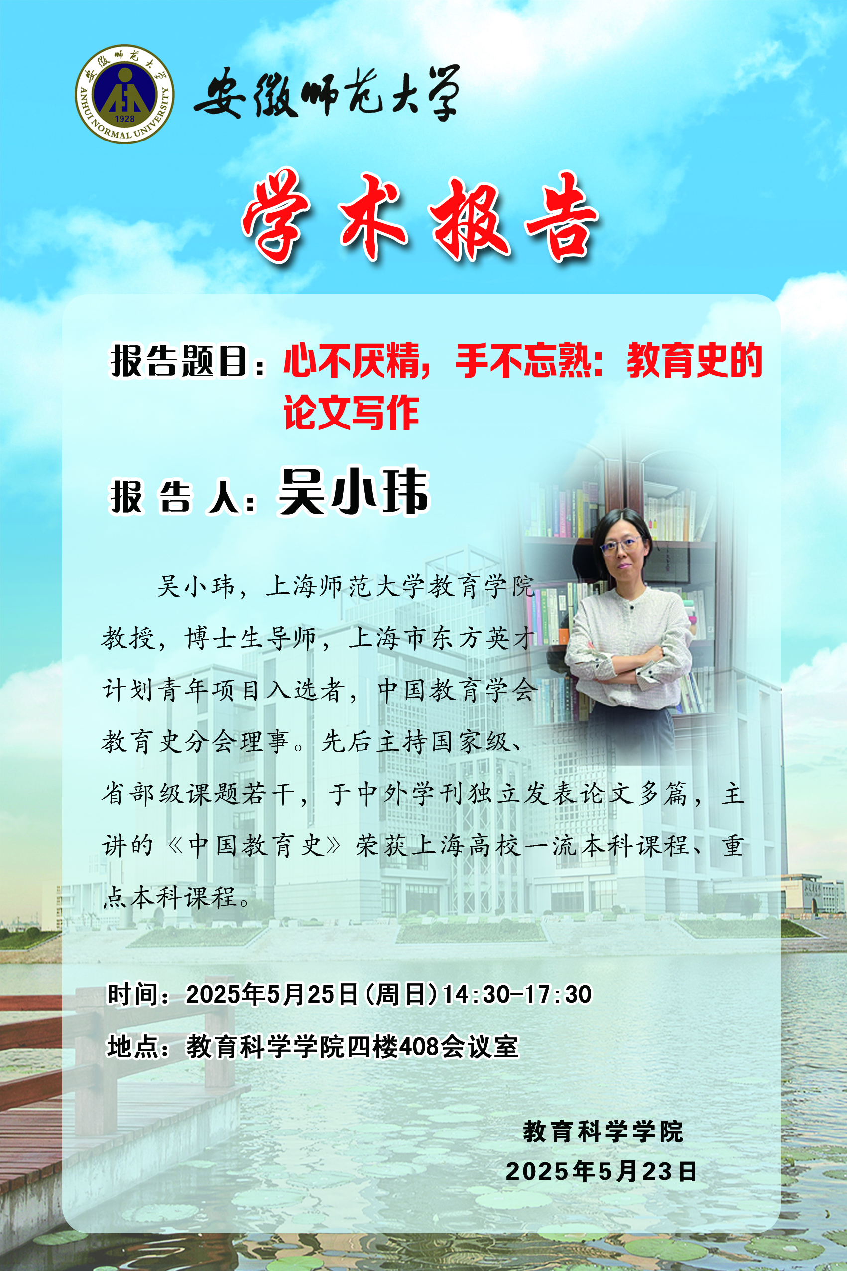 【学术预告】吴小玮:心不厌精,手不忘熟:教育史的论文写作