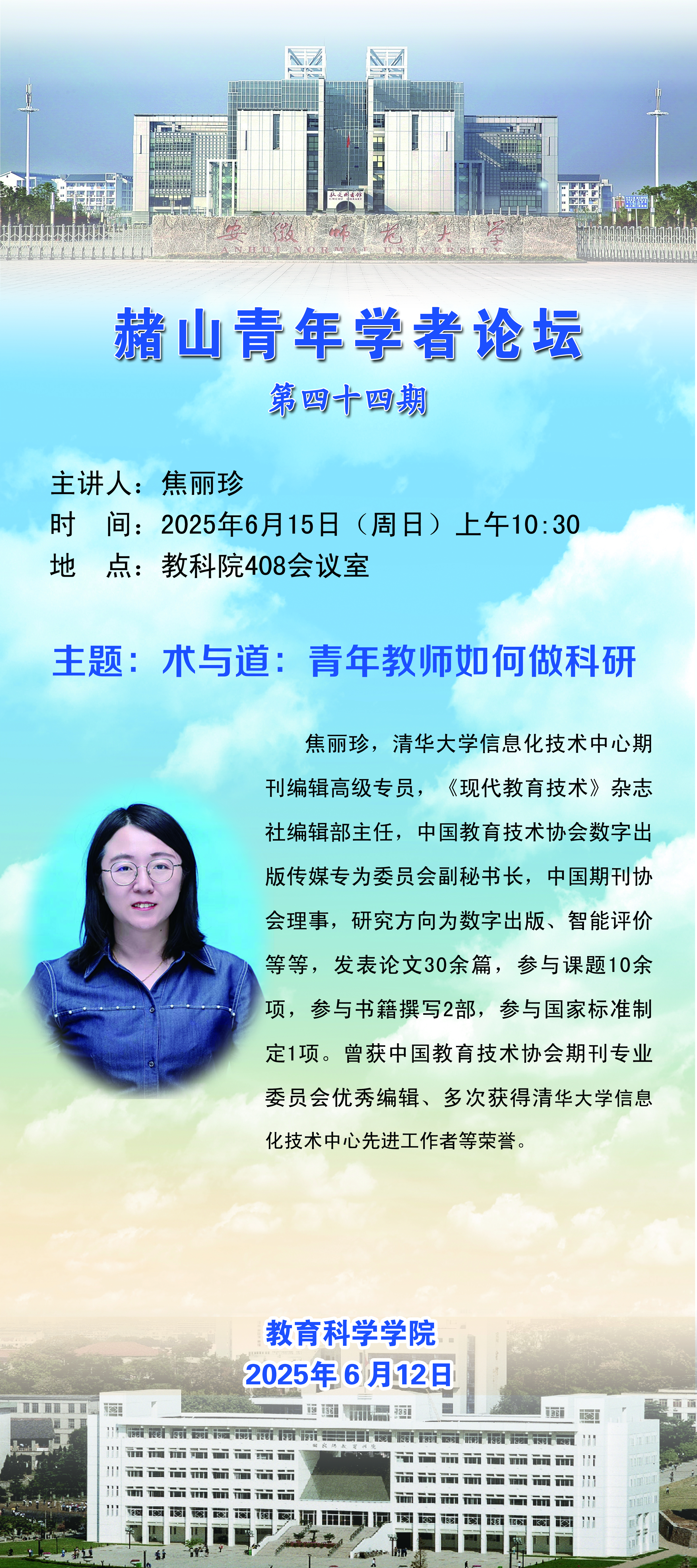 【学术预告】赭山青年学者论坛(第四十四期):术与道:青年教师如何做科研