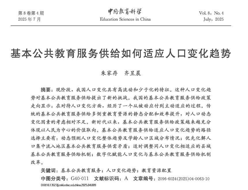 现阶段,我国人口变化具有高流动和少子化的特征。这种人口变化趋势对基本公共教育服务供给提出了新的挑战。我国的基本公共教育服务供给政策走向显示:在对待人口变化方面,经历了一个从被动应付到主动适应的过程。传统的基本公共教育服务供给多侧重教育资源的静态分配和效率提升,对人口动态变化因素的考虑相对不足。新时代以来,基本公共教育服务供给政策越来越充分体现以人民为中心的价值取向。基本公共教育服务供给适应人口变化趋势的路径选择主要有:动态预测人口变化整体趋势及学龄人口区域分布情况;优先化解人口集中流入地区基本公共教育服务供需矛盾;适时调整同人口变化相适应的县域基本公共教育服务供给机制;数字化赋能人口变化与基本公共教育服务供给机制改革。
