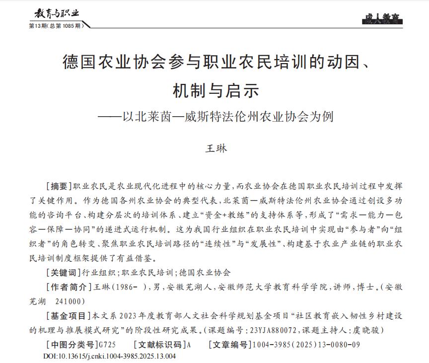 王琳:德国农业协会参与职业农民培训的动因、机制与启示——以北莱茵—威斯特法伦州农业协会为例