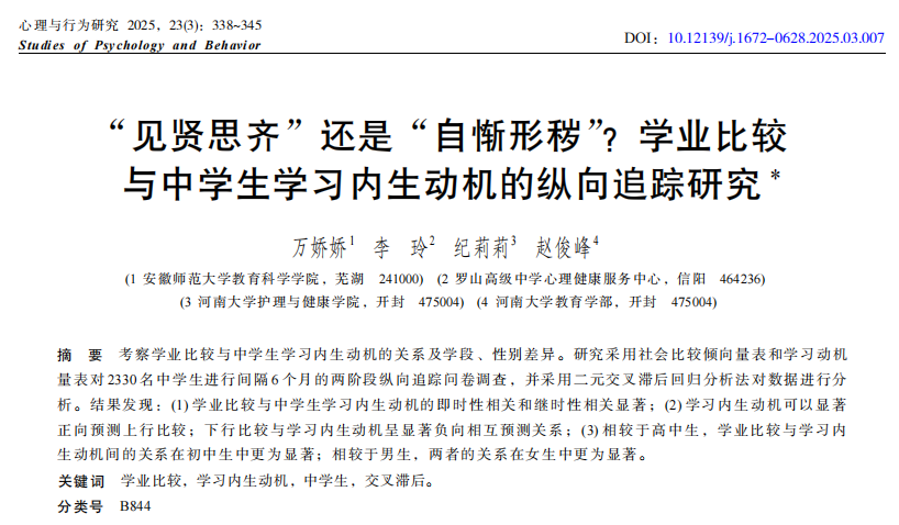 万娇娇等:“见贤思齐”还是“自惭形秽”?学业比较与中员工学习内生动机的纵向追踪研究