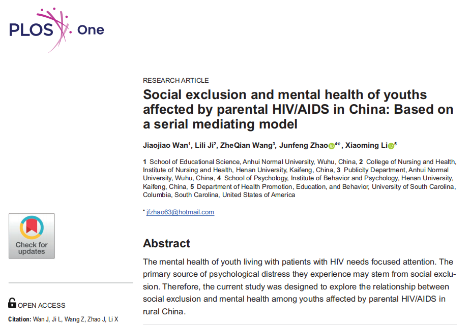 The mental health of youth living with patients with HIV needs focused attention. The primary source of psychological distress they experience may stem from social exclusion.Therefore, the current study was designed to explore the relationship between social exclusion and mental health among youths affected by parental HIV/AIDS in rural China.