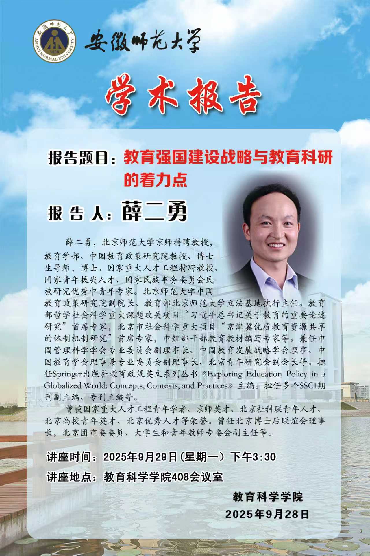 【学术预告】薛二勇:教育强国建设战略与教育科研的着力点