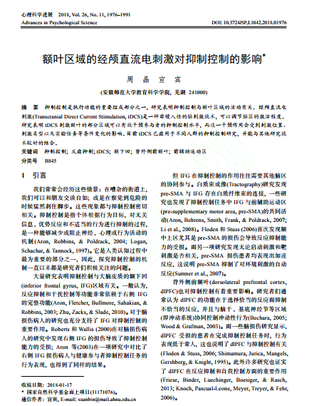 周晶,宣宾:额叶区域的经颅直流电刺激对抑制控制的影响