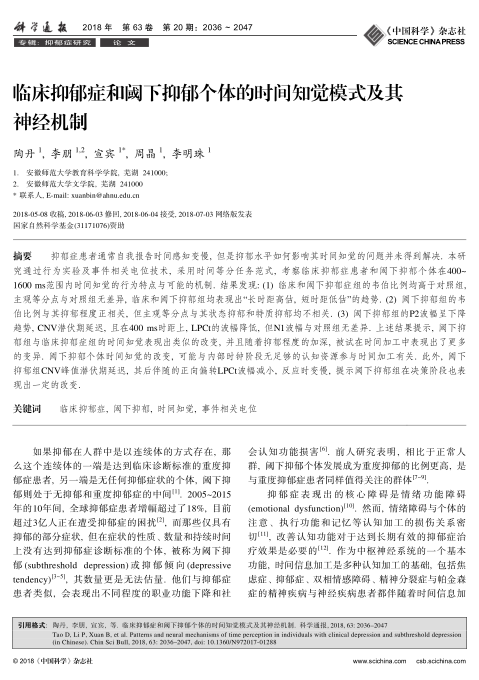 临床抑郁症和阈下抑郁个体的时间知觉模式及其神经机制_陶丹.pdf