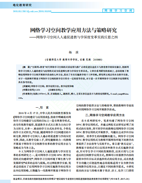 杨滨:网络学习空间教学应用方法与策略研究 一 网络学习空间人人通促进教与学深度变革实践反思之四