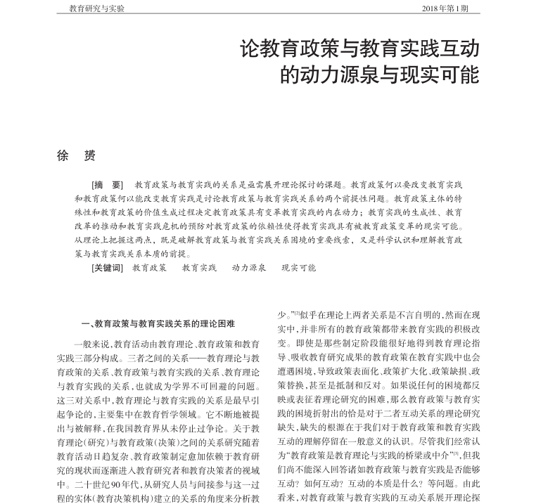徐赟:论教育政策与教育实践互动的动力源泉与现实可能