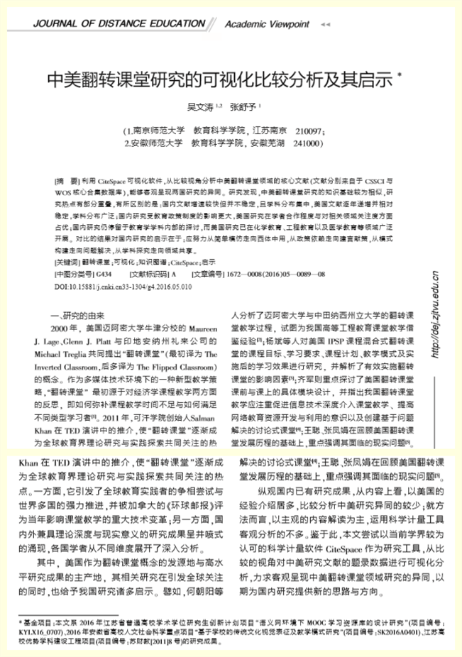 吴文涛:中美翻转课堂研究的可视化比较分析及其启示