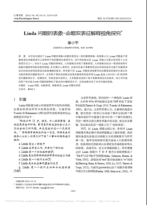 Linda问题的表象_命题双表征解释视角探究_李小平.pdf