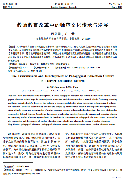 周兴国,方芳:教师教育改革中的师范文化传承与发展