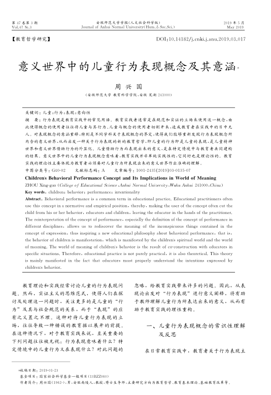 周兴国:意义世界中的儿童行为表现概念及其意涵