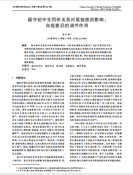 李子华:留守初中生同伴关系对孤独感的影响:自我意识的调节作用