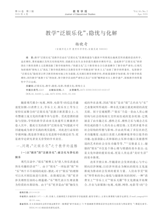 杨晓奇:教学“泛娱乐化”:隐忧与化解