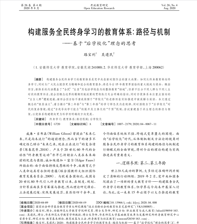 【教师科研】路宝利,吴遵民:构建服务全民终身学习的教育体系: 路径与机制———基于“后公司化”理念的思考