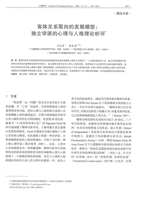 【教师科研】王礼军:客体关系取向的发展模型:独立学派的心理与人格理论析评