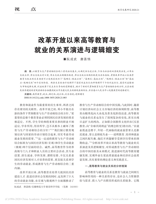 【教师科研】阮成武,唐菡悄:改革开放以来高等教育与 就业的关系演进与逻辑嬗变