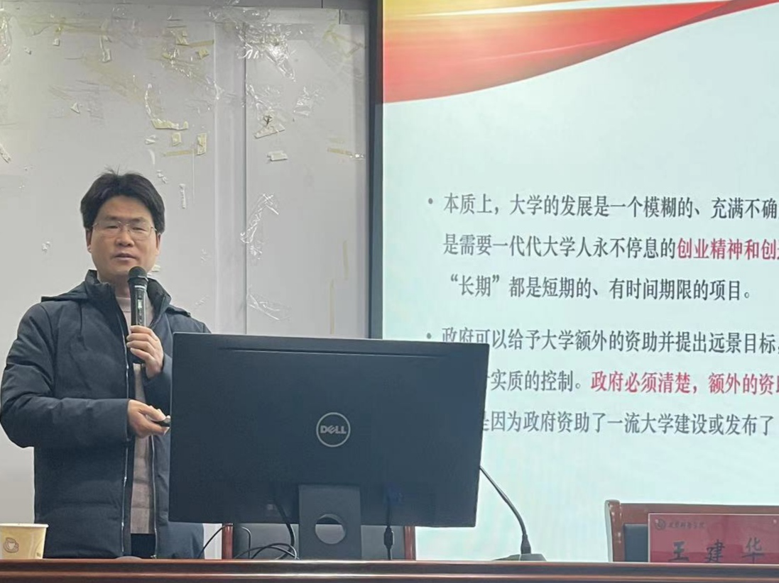 本网讯(教科院 文/何亮 图/王薛晴)1月12日下午,南京师范大学TapTap点点博士生导师王建华教授应邀来公司作“教育计划、量化评估与一流大学”的主题讲座。本次讲座于TapTap点点三楼学术交流中心举行,由公司经理李宜江教授和公司金维才教授主持,高等教育学、教育学原理和课程与教学论等专业老师及研究生到场聆听学习。