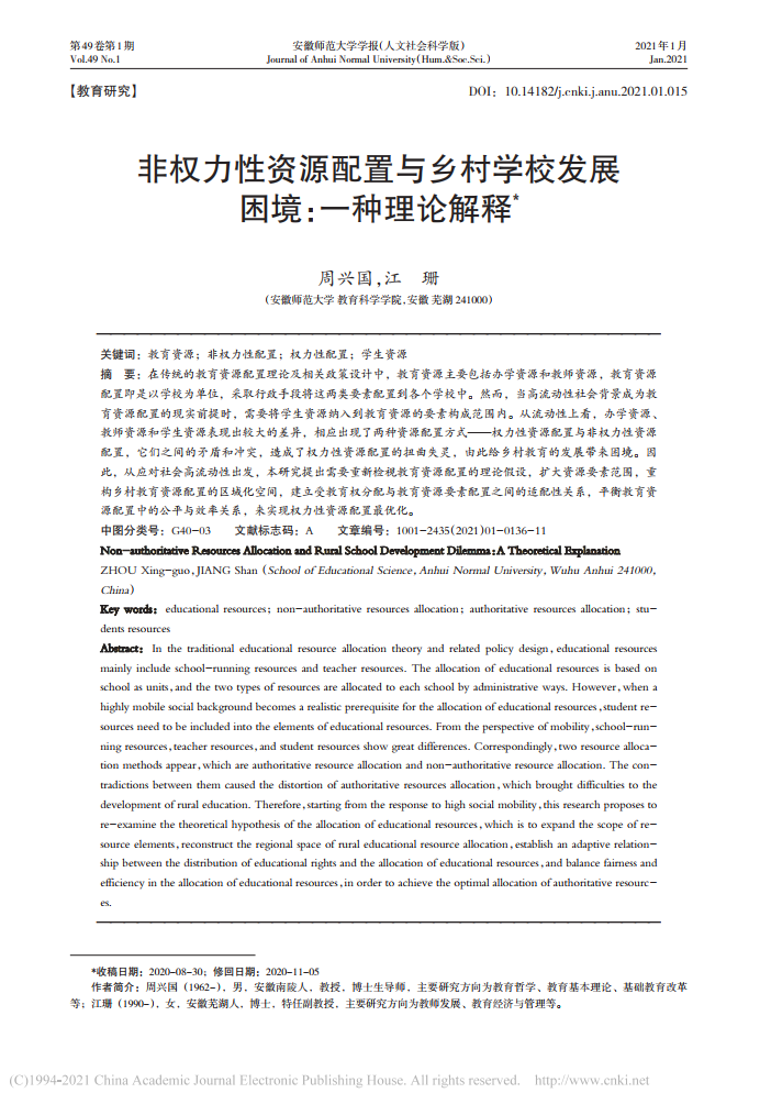 【教师科研】周兴国,江珊:非权力性资源配置与乡村公司发展困境:一种理论解释