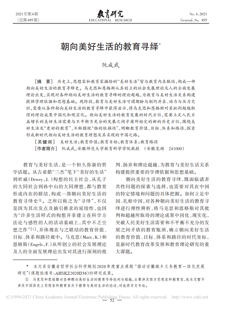 【教师科研】阮成武:朝向美好生活的教育寻绎