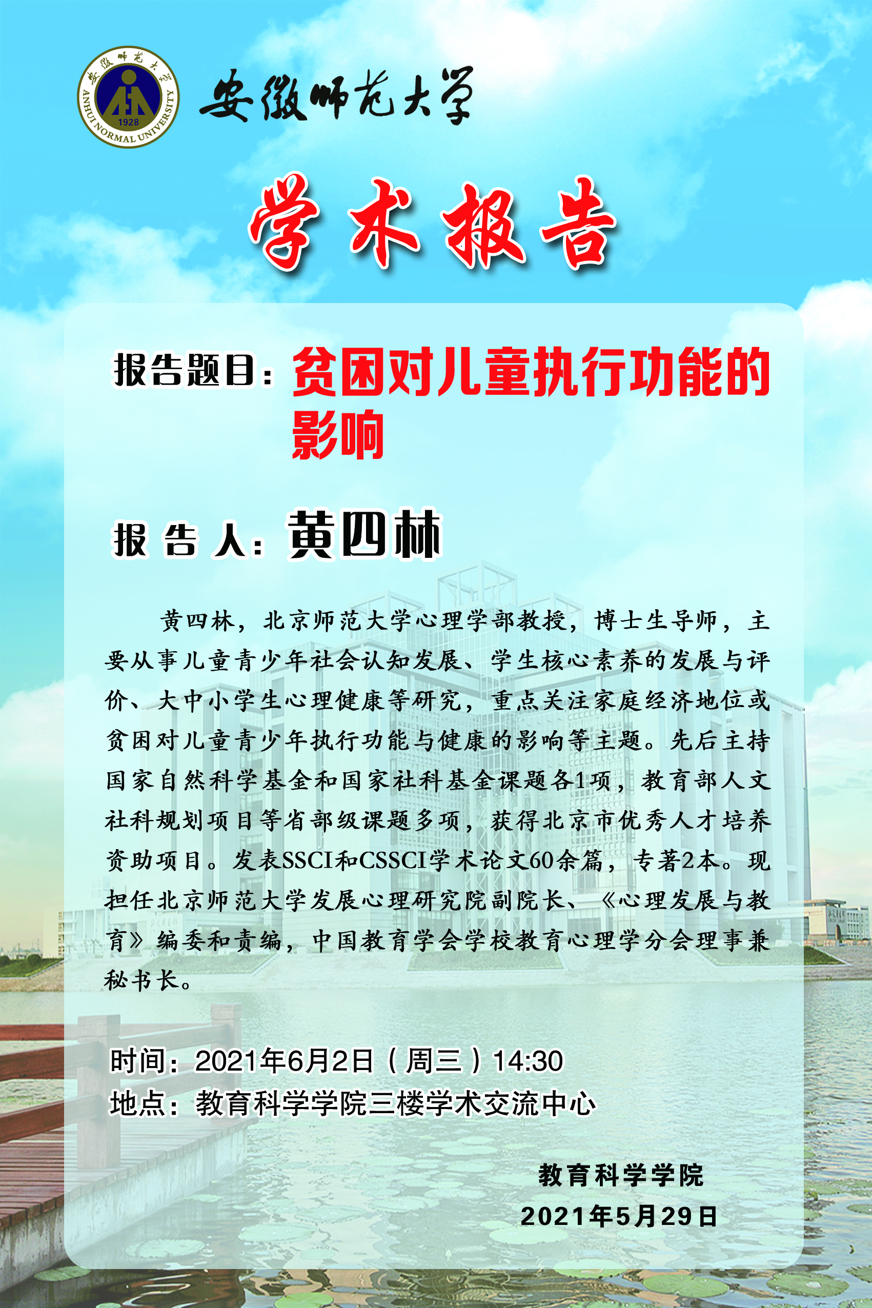 【学术预告】黄四林:贫困对儿童执行功能的影响