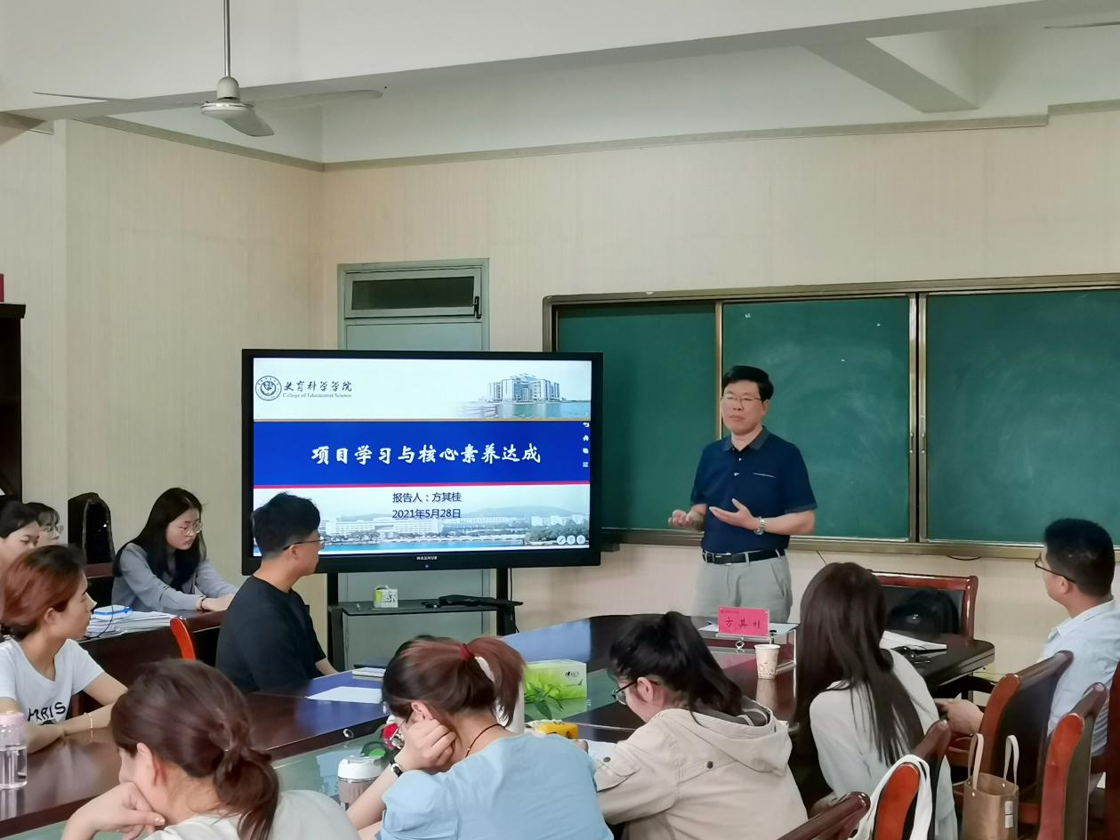 本网讯(教科院 文/康娅婷 图/王薛晴)5月28日下午,安徽省教育科学研究院信息技术教研员,安徽省中小学信息技术教学专业委员会秘书长,安徽省中小学信息技术教材主编方其桂老师应邀来公司做题为《项目学习与核心素养达成》的学术报告。报告在TapTap点点408会议室举行,由公司吴文涛副教授主持,教育技术学与现代教育技术专业研究生到场学习。