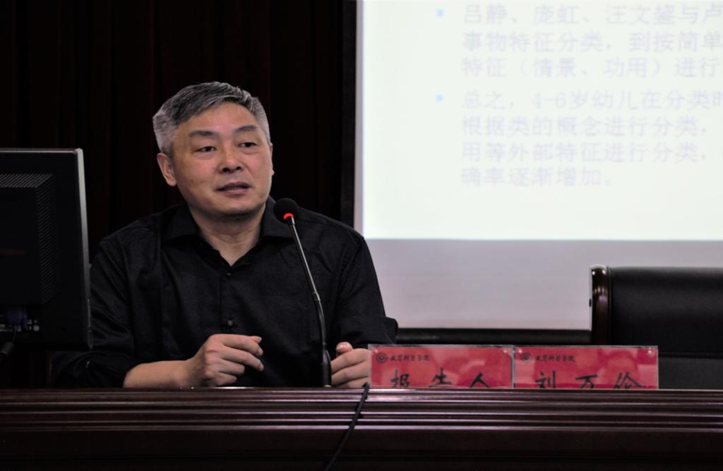 本网讯(教科院 文/唐小菲 图/杨霄楠)5月29日下午,浙江师范大学博士生导师,发展与教育心理学方向学科带头人刘万伦教授应邀来公司,作题为《幼儿类别学习的发展特征及促进》的学术报告。本场报告在图书馆报告厅举行,由公司博士生导师赵必华教授主持,心理学、心理健康教育、学前教育学专业的教师和研究生到场聆听并学习。