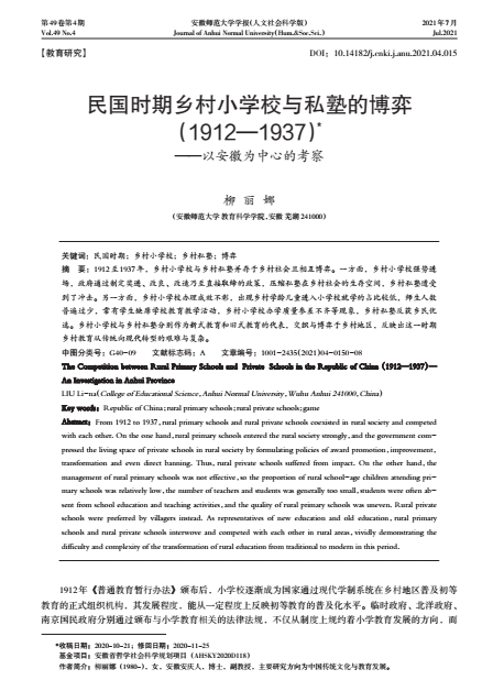 【教师科研】柳丽娜:民国时期乡村小公司与私塾的博弈(1912—1937)——以安徽为中心的考察