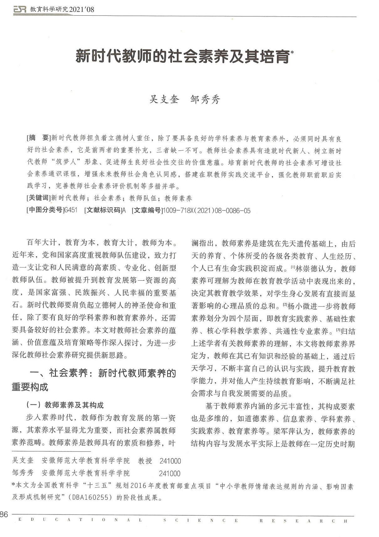 【教师科研】吴支奎等:新时代教师的社会素养及其培育