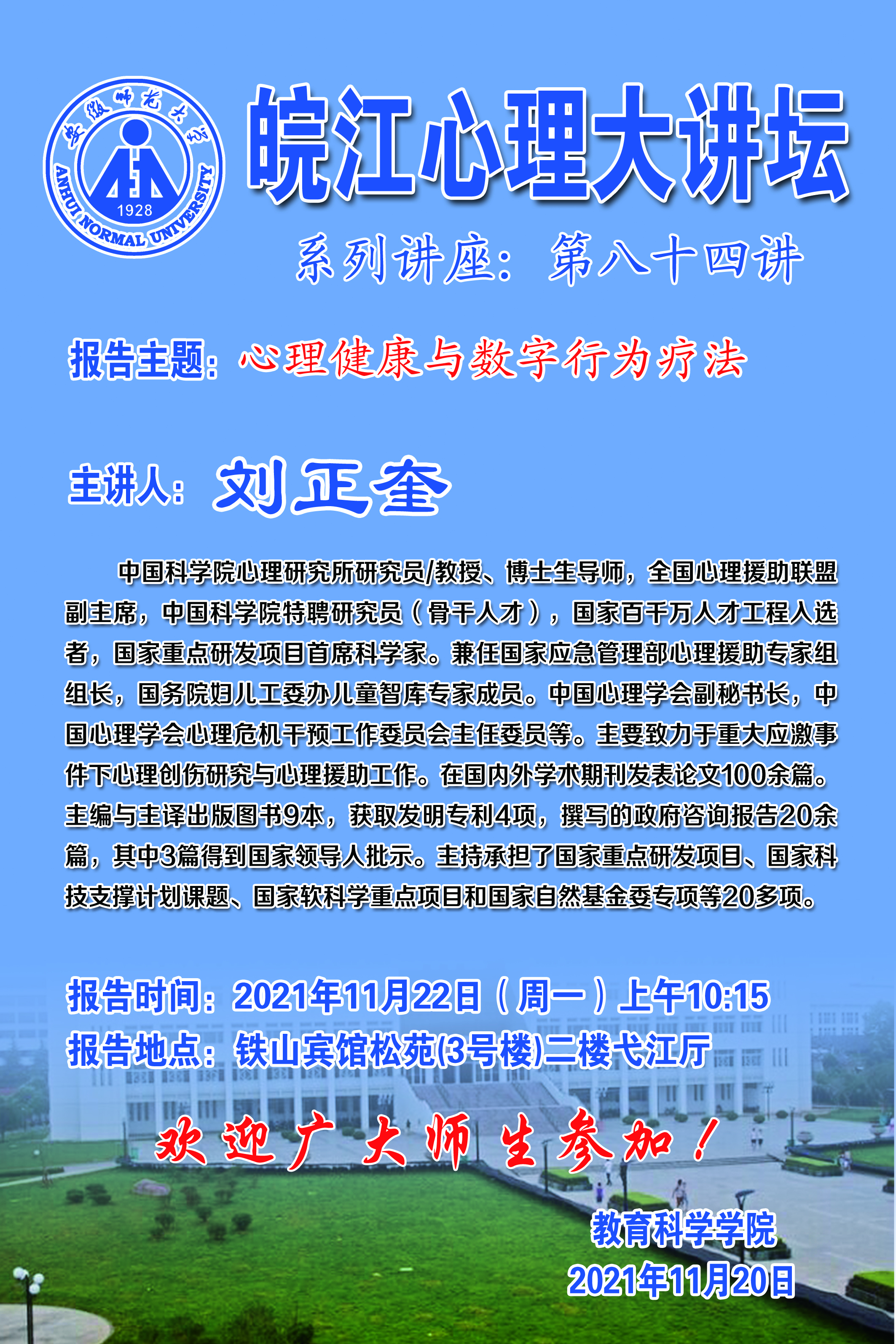 【学术预告】皖江心理大讲坛第八十四讲:心理健康与数字行为疗法