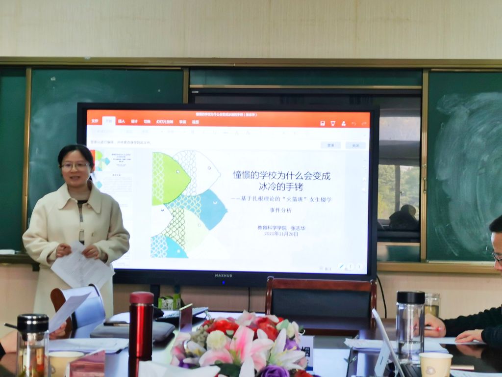 本网讯(教科院 吕义红)2021年11月26日下午,“赭山青年学者论坛”(第七期)在教科院408会议室如期开讲。本次论坛的专题是“教育管理问题研究”,徐赟、肖龙、张志华三位青年博士担任主讲人,特邀教务处处长周端明教授、公司路宝利教授担任呼应专家。副经理辛治洋教授、吴文涛、柳丽娜、张丽、马兴、滕曼曼、薛卫洋、占淑玮、李毅恒、翟清华、陈晨、魏晓敏、杨俊铨、陈元龙、吴颖等老师以及部分博士生参加了此次论坛。论坛由陈娜博士主持。