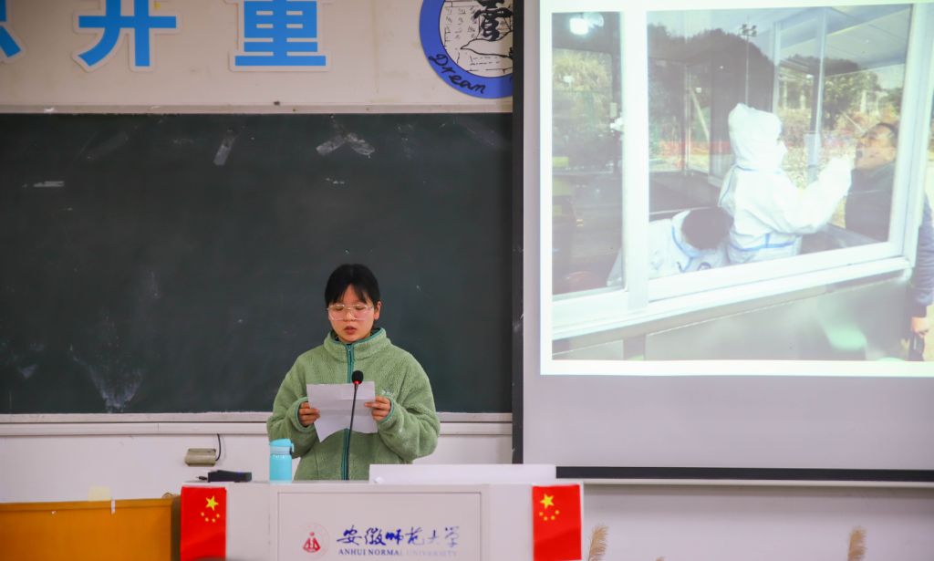 “自律教科人”活动代表谢家磊、“年味最是故乡浓” 活动代表彭少斌、“青春系列微团课”活动代表姚庆伍、曾梦蝶等依次上台分享了自身参与活动的初衷以及活动的收获,充分展现了教科学子寒假的丰富生活以及积极向上的青春风采。彭少斌表示,在视频的拍摄过程中,他深入了解家乡的年俗,体悟了家乡的传统文化,感受了只属于过年的温情。21级心理学团支书陈艳表示,此次活动让她懂得了青春是用来奋斗的,她会积极向各优秀代表学习,带领班级同学共同进步,努力成为新时代优秀青年。