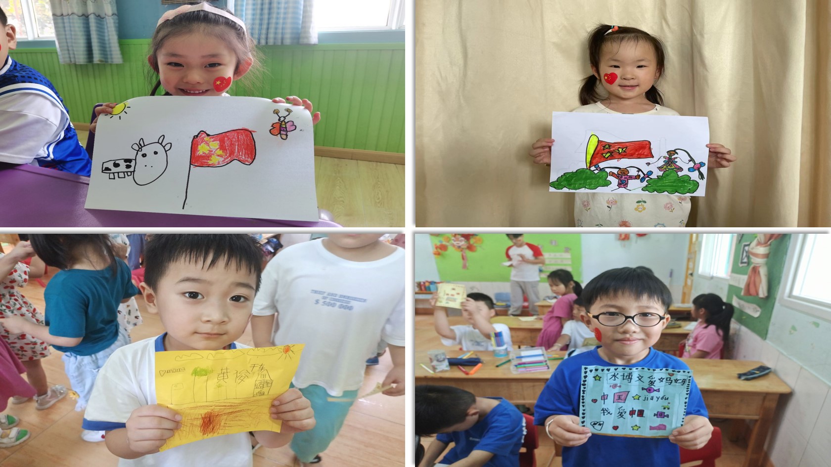 团队依据儿童的年龄特征和能力差异,在中班和大班分别开展不同内容、不同层次的绘本讲演和实践课程。队员们为中班儿童讲述《生气汤》绘本,结合“生气汤”的游戏体验,帮助小朋友们了解生气这一情绪,并引导他们学会用恰当的方式排解不良情绪。队员们带领大班儿童学习《爷爷变成了幽灵》绘本,告诉小朋友们要懂得珍惜美好的感情,了解面对死亡和离别的正确态度。同时,结合“喜迎二十大,永远跟党走,奋进新征程”的主题,团队设计了感知红色文化的特色课程。在中班的“绘国旗”实践课上,队员们将国旗贴纸贴在了小朋友们可爱的脸庞上,并组织他们将升旗仪式的场景画在纸上;同时在大班“爱的告白”实践课活动中,引领他们在彩纸上画出自己最爱的人并说明原因,培养小朋友们爱国向党、向善向美之心。