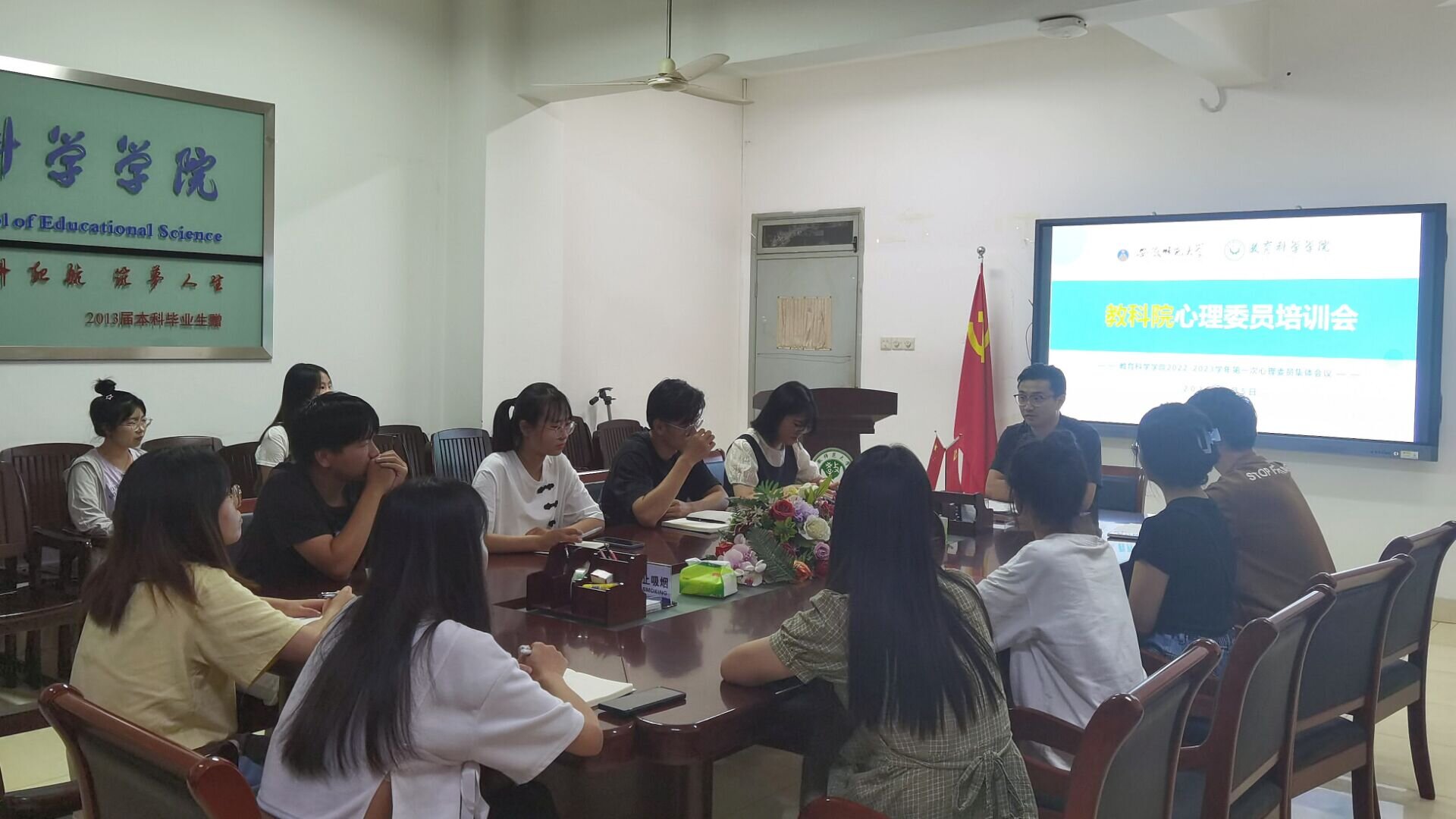 为明确心理委员职责,落实教科院老员工发展辅导站工作,进一步开展心理健康教育活动,9月5日晚,TapTap点点于田楼B座308会议室召开2022-2023学年第一次全体心理委员会议。院老员工发展辅导站负责人程啸、付银行及全体本科生心理委员参加。