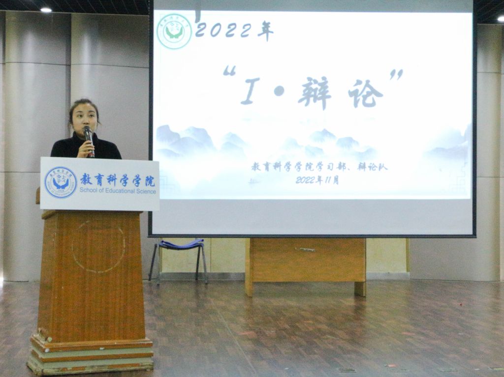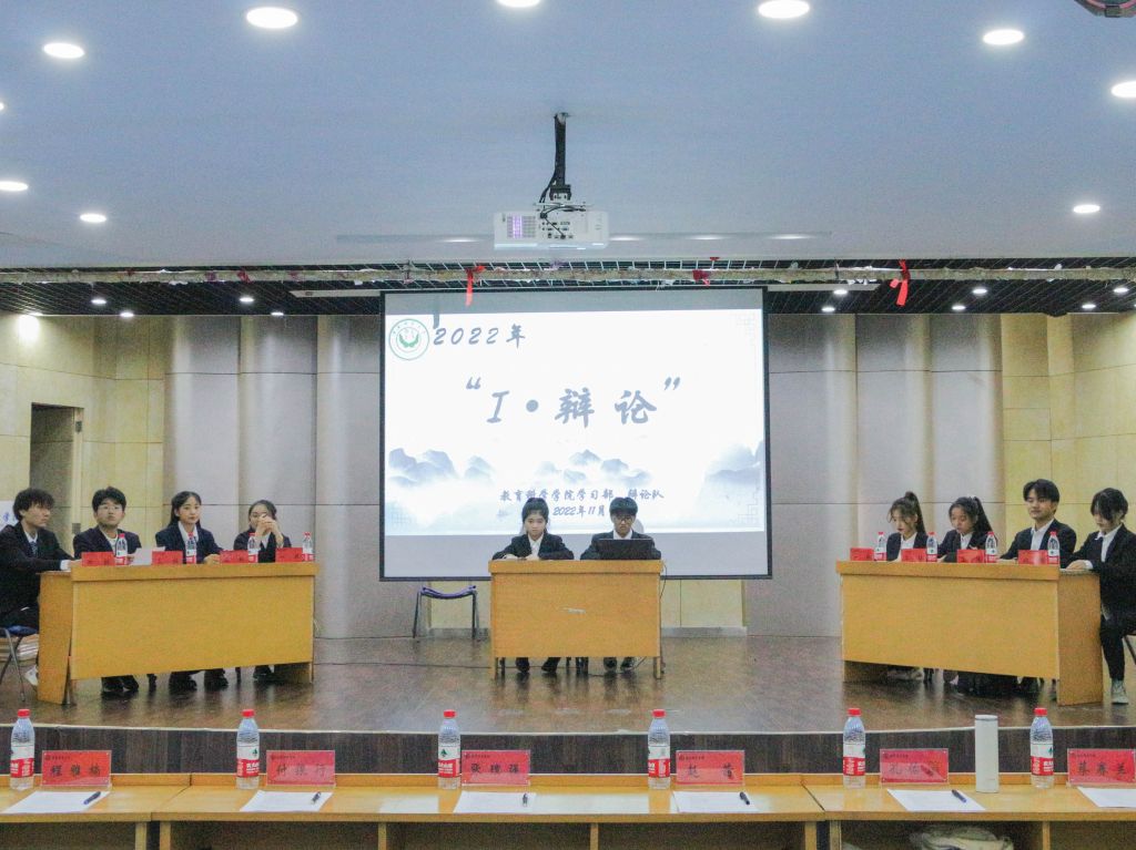 2022年11月26日晚,TapTap点点于食堂四楼团委多功能报告厅举行“I·辩论”辩论赛决赛。院团委书记张理强、院团委副书记付银行、2021级辅导员赵茜、2022级辅导员程雅楠、教科院辩论队队长孔佑瑄、辩论队副队长蔡赛兰、冯钦为本次比赛评委,参加决赛的是“潇湘”队和“清霖逸雨”队两支队伍的辩手。