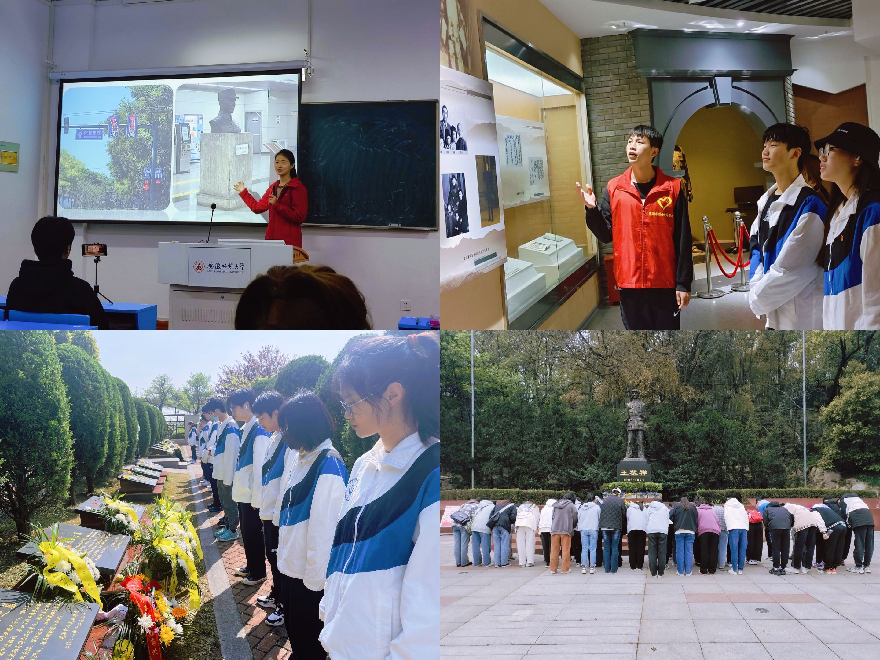 各年级团员青年以团支部为单位,用实际行动追忆革命先烈,补红色之钙。各班团支部提前组织策划,通过支部大会带领同学们了解清明节习俗、学习革命先烈的英雄事迹和伟大精神。部分团支部前往芜湖烈士纪念馆参观瞻仰,详细了解百年历程中为国家、为人民作出突出贡献乃至壮烈牺牲的烈士英雄事迹,并在烈士纪念碑前进献鲜花、行三鞠躬礼、为英烈默哀,致敬他们不畏牺牲、忠诚为党为民的崇高革命精神。部分团支部参观了王稼祥纪念馆,了解王稼祥先生的生平轶事和突出贡献,感受革命先烈的宝贵精神财富,上了一堂生动的红色党史课。