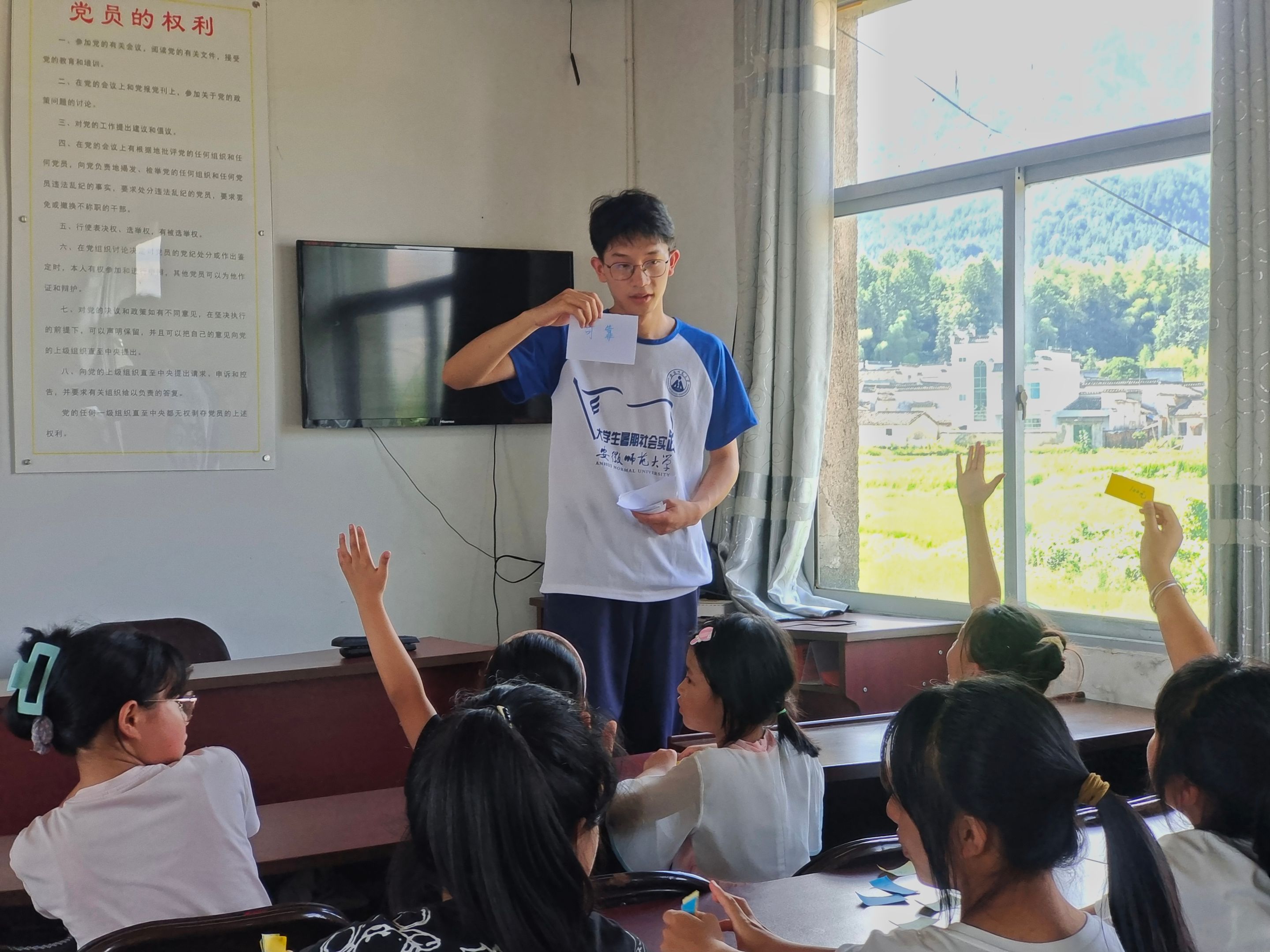 为加强乡村儿童的心理健康服务,7月12日,教育科学学院全心全益赴黟县石亭村“黟始”本科生社会实践团队走进安徽省黄山市黟县石亭村村委会,为乡村儿童开展了一次别开生面的心理团辅课程。