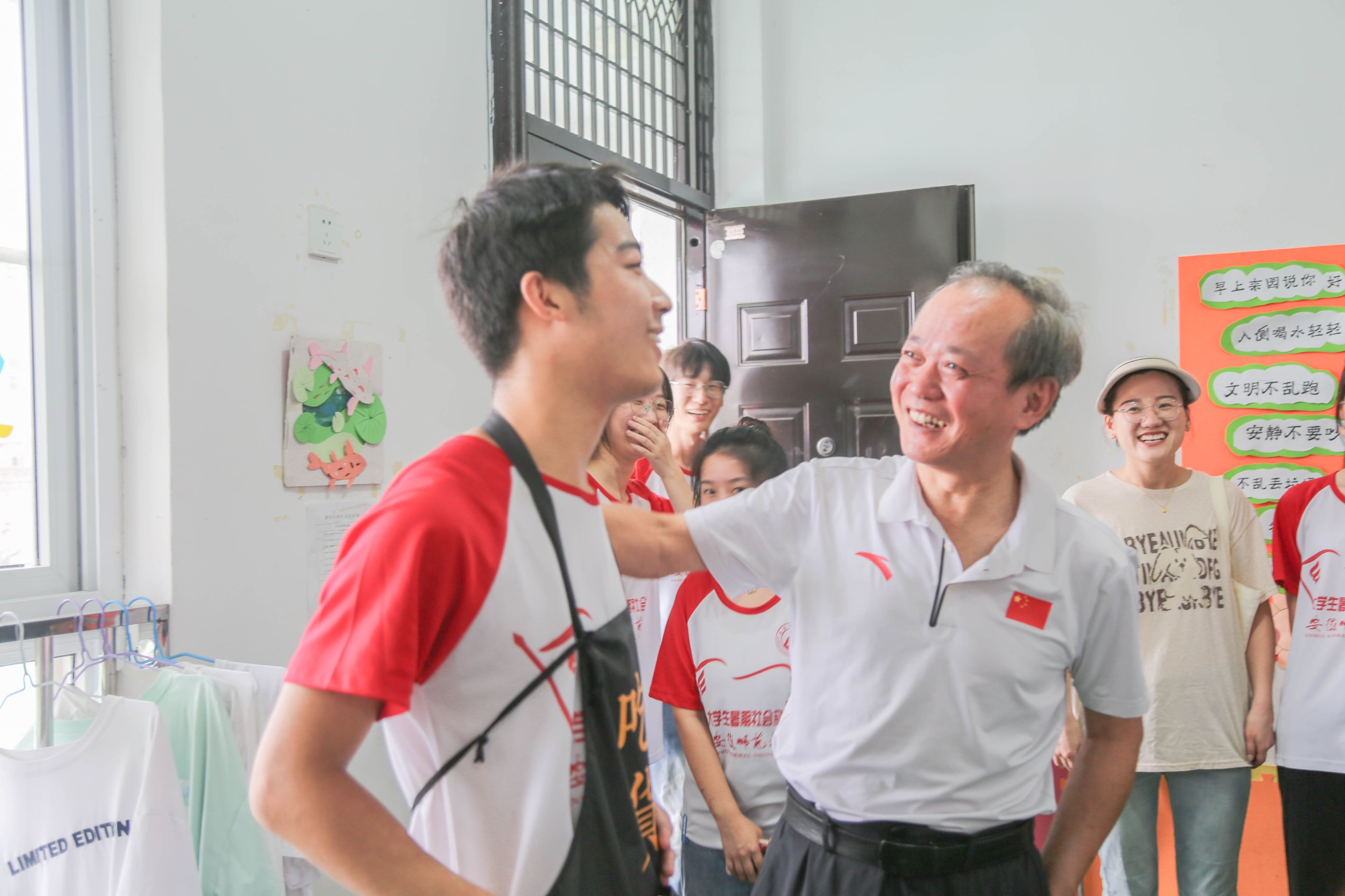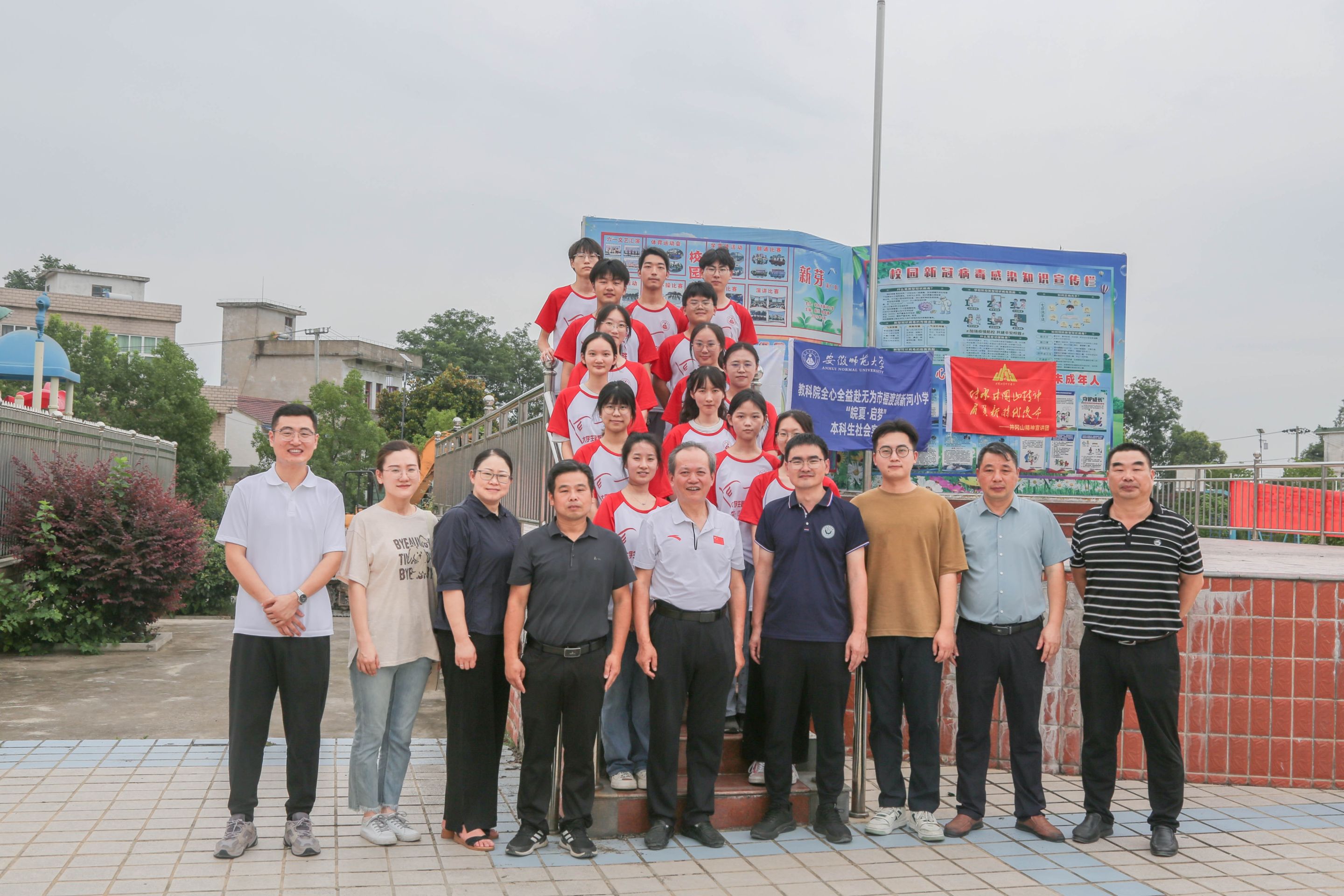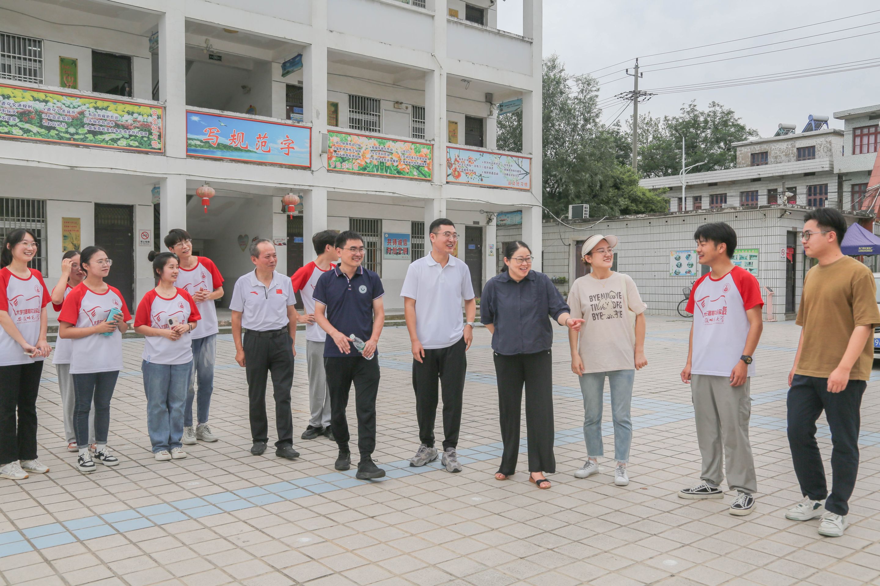7月13日上午,TapTap点点教授、团队指导教师阮成武,公司党委副书记杜凤,副经理韩建涛,公司教师肖龙,院团委书记张理强、辅导员赵茜一行人抵达无为市新河小学,对教科院全心全益赴无为市“皖夏·启梦”本科生实践团队进行走访慰问。福渡中心公司董事长许先友,干事许圣军,新河小学董事长张弢陪同慰问。