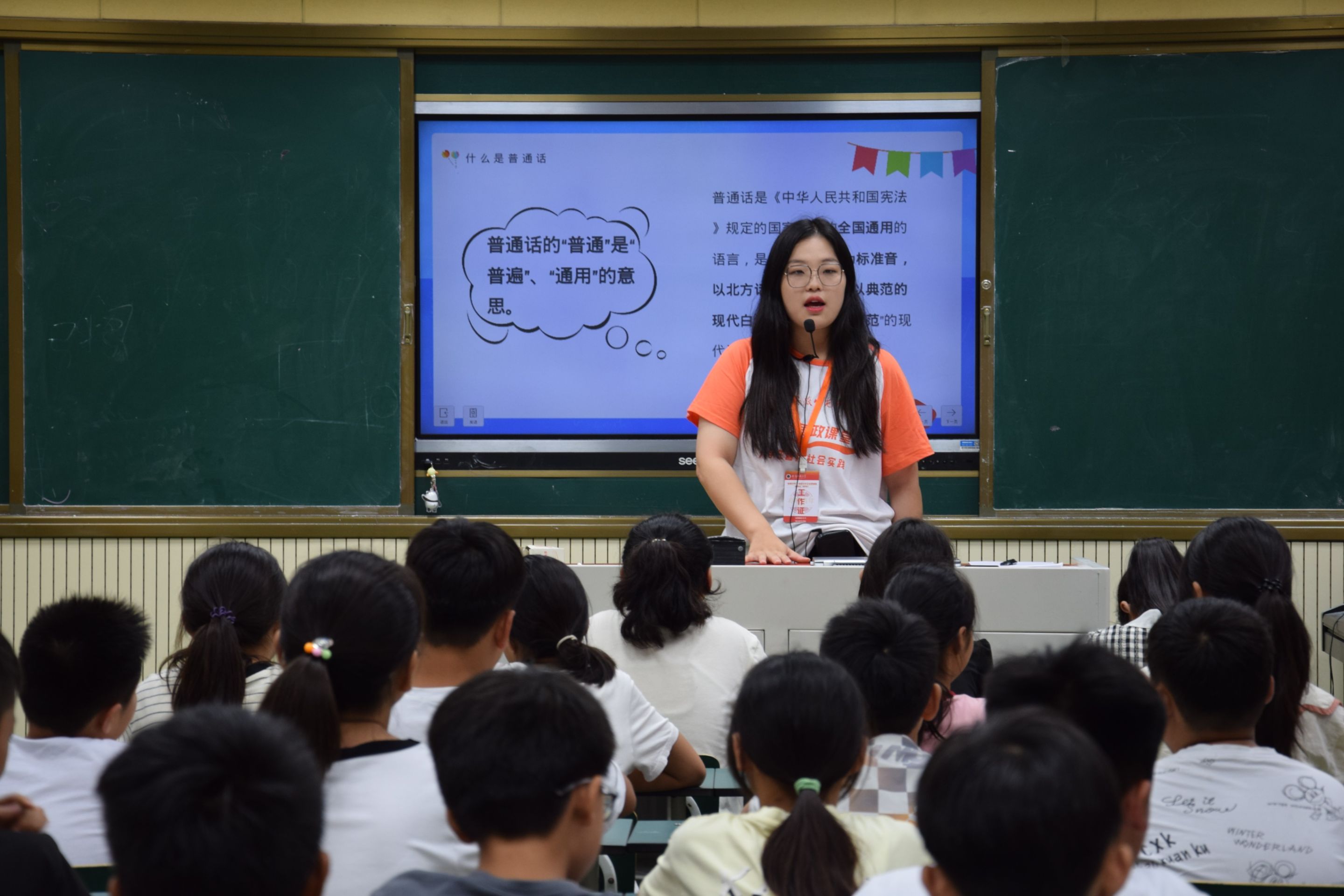 课程首先以“什么是普通话”进行问题引入,引导员工思考普通话的内在含义,进一步强调讲好普通话的重要性,让员工们充分认识到推广普通话的作用和意义。此外,团队以普通话在乡村普及程度的现状为依据,结合青少年课堂学习的特点,在课程实施阶段设置了经典诗词朗诵和趣味绕口令环节,让员工在轻松愉悦的课堂氛围中学习普通话、练习普通话。课程结束后,授课老师马紫涵表示:“本次课程中同学们表现得非常积极,可以看出他们对普通话的学习抱有极大的热情,希望他们在接下来的学习生活中能够继续带着这份热情,让普通话真正融入生活的方方面面。”