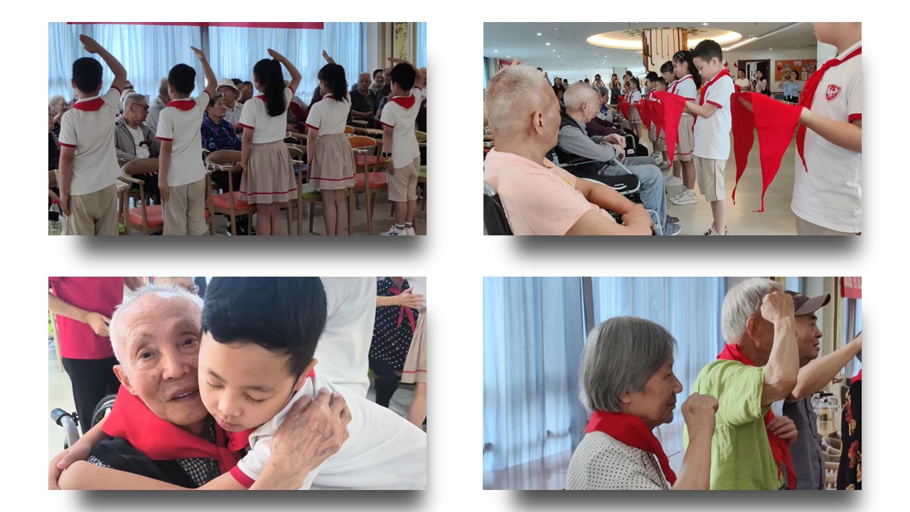 7月1日,宜居养老公寓与芜湖华师实验公司联合举办“庆七一致敬老党员”活动。活动开始,实验公司羽飞志愿者为老党员们献唱红歌并亲手为他们戴上表达敬意的红领巾,加强了党员与少先队员之间的联结。故事分享环节余鸿业爷爷讲述了自身进军大西南和和平解放西藏的经历,向年轻一代传递宝贵的历史记忆和价值观念。他通过自己的经验和智慧,告诫青年人当珍惜当下美好生活,不断为社会国家做出贡献。