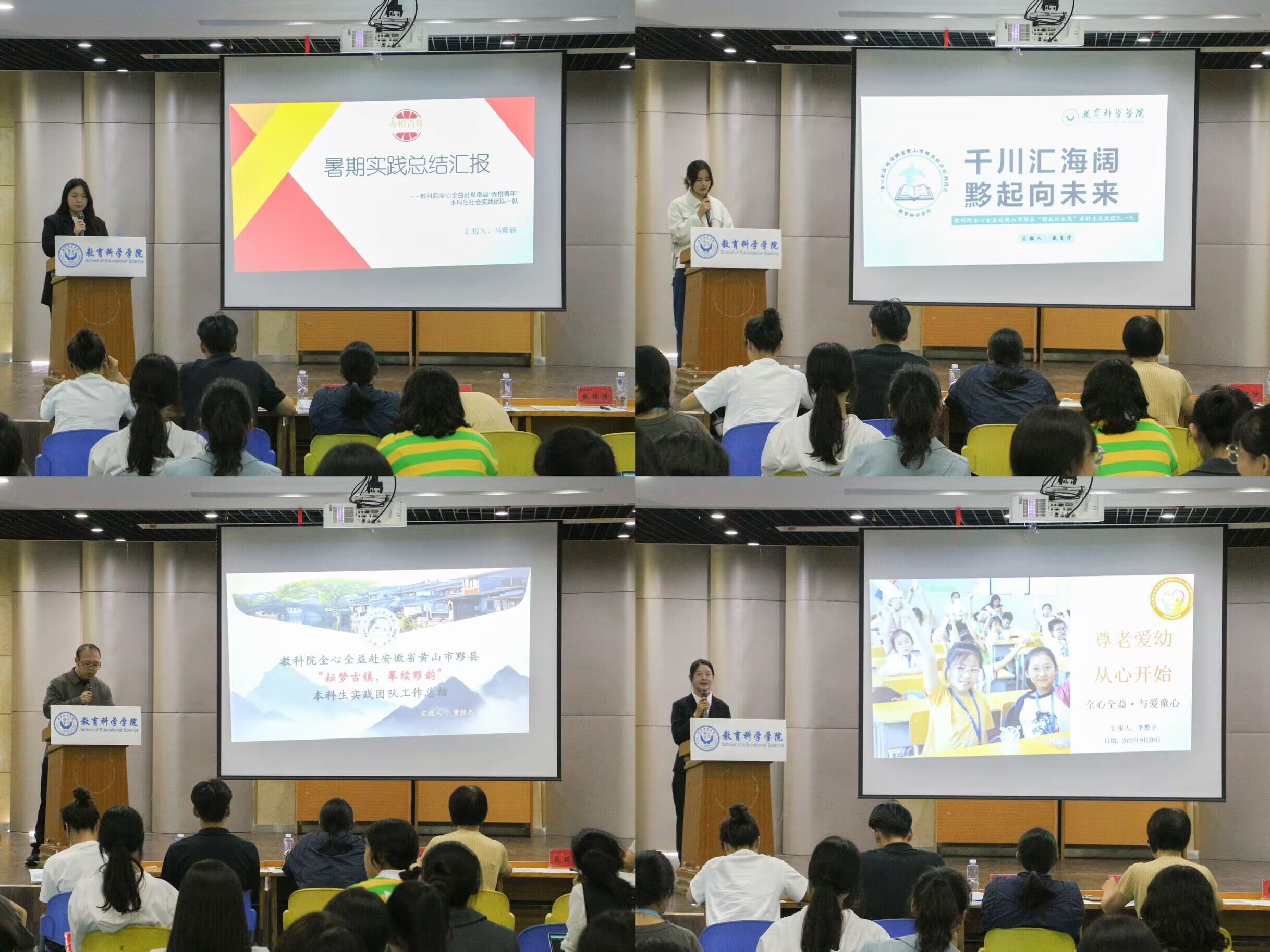 结合前期队伍的实践结果和宣传报道,公司遴选了30支本科生队伍,4支研究生队伍参与此次结项答辩,各团队汇报人围绕实践内容、实践总结、实践成果等方面内容进行汇报。各团队的答辩紧扣相关主题内容,介绍了其团队的工作内容、工作成果及反响,全面展现教科学子在学习贯彻党的二十大精神、义务支教、助力乡村振兴、服务农村未成年人、传承优秀传统文化、志愿服务宣讲等方面取得的成果。公司今年暑期社会实践参与度高,成果优,宣传广,参与人数930人,58支队伍参加挑战杯红色专项,40支队伍获得省级奖项,社会实践取得了良好的育人成效。