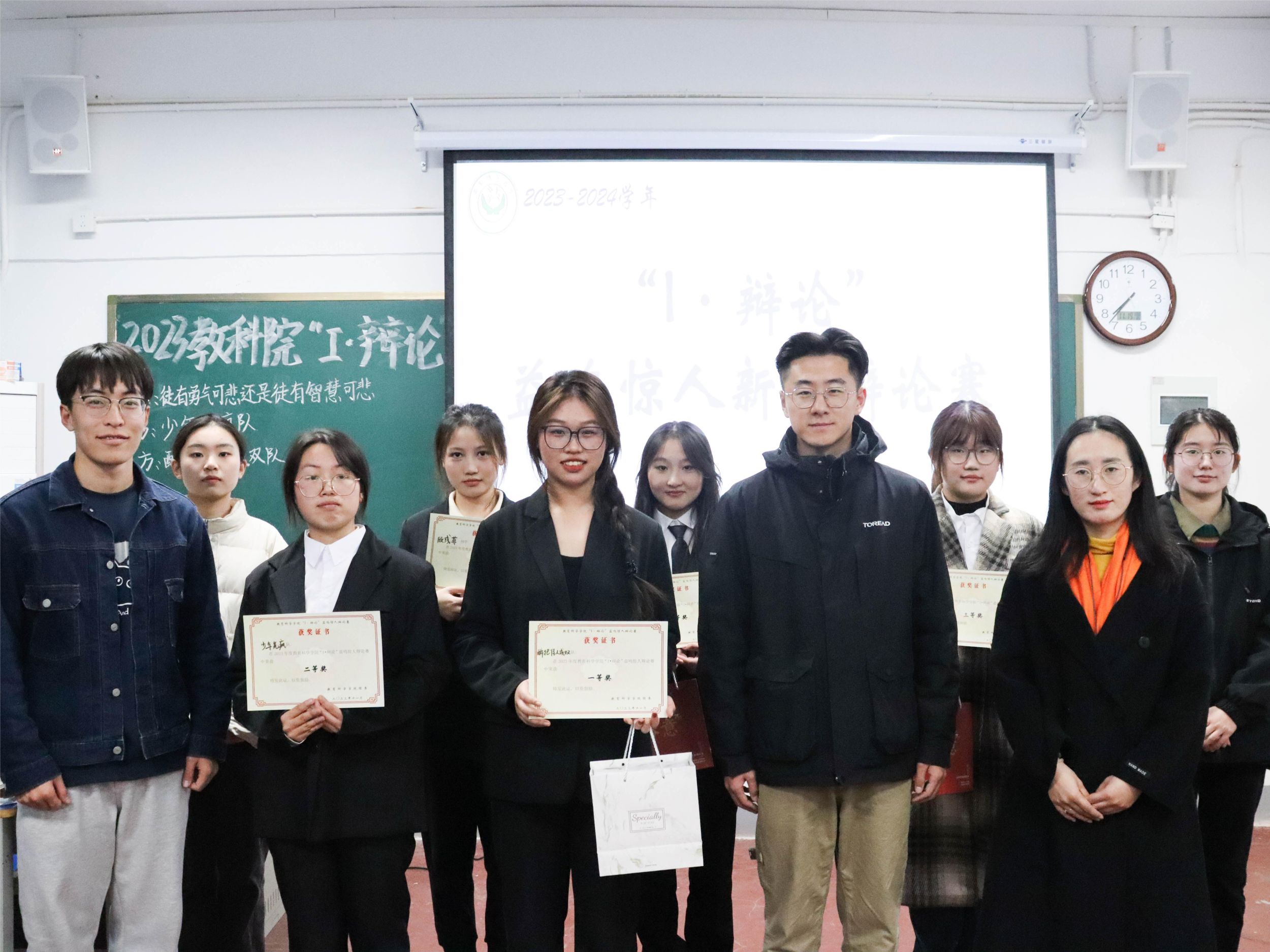 此次“I·辩论的比赛结果是:“醉把佳人成双”队获得一等奖,“少年先疯”队获得二等奖,“显允辩论”队及“辩才无碍”队获得三等奖。钱雨暄以出彩的表现赢得本场“最佳辩手”称号,顾彧菲获得“礼仪辩手”称号。