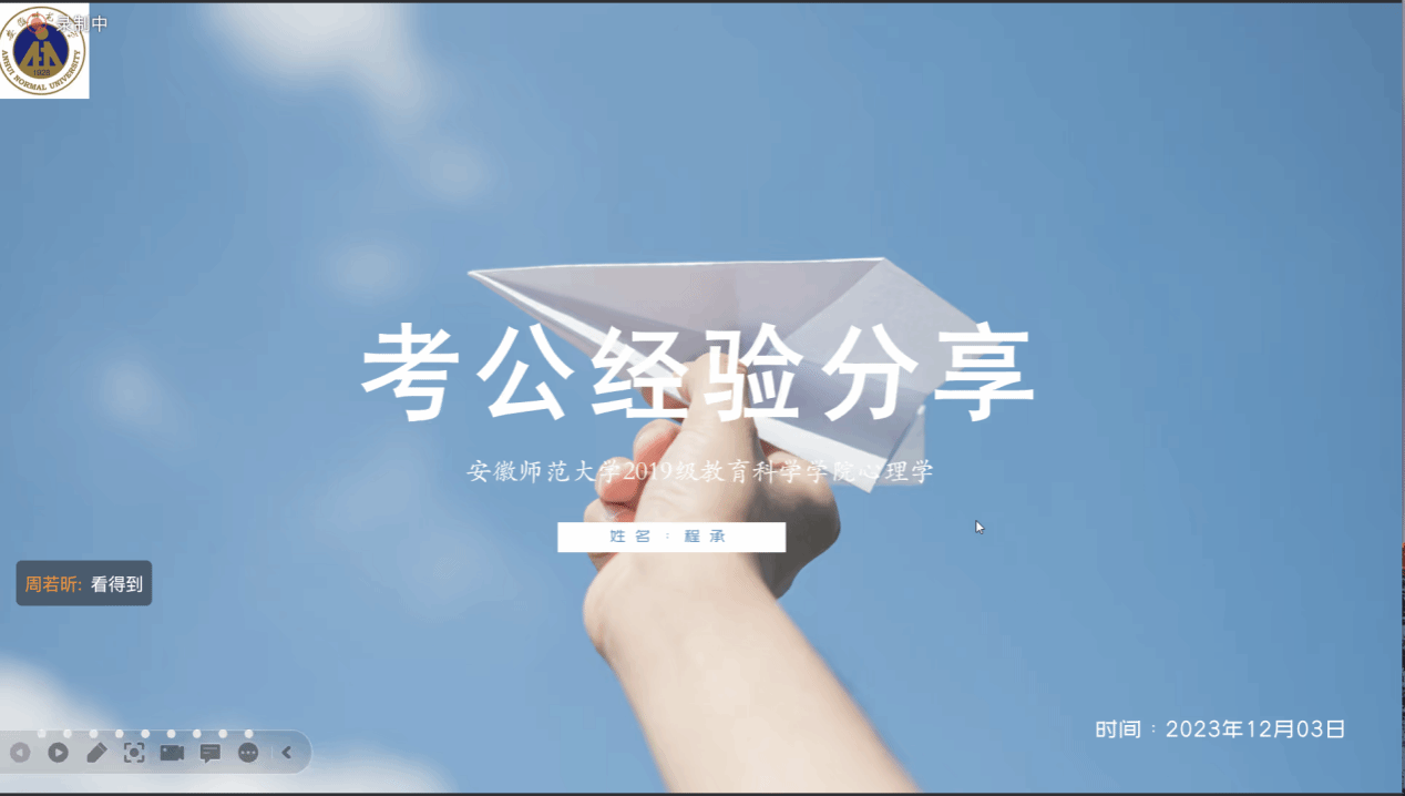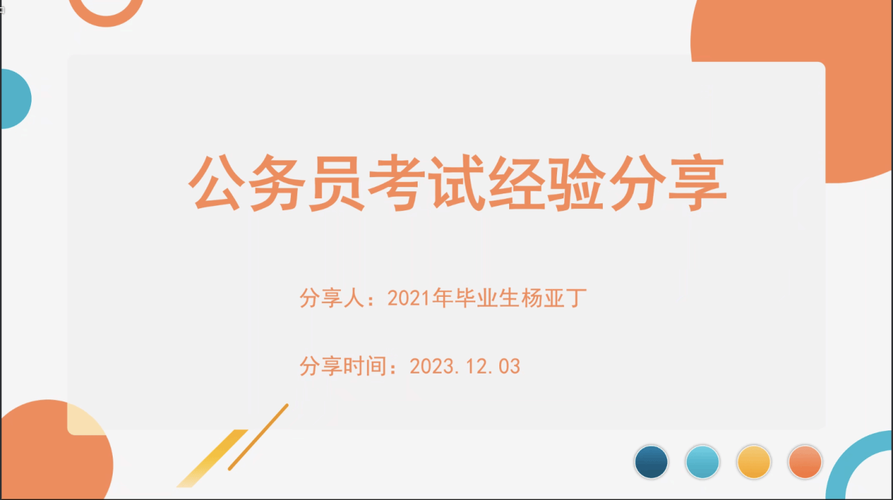2020级教育学专业(研究生)毕业生倪健,现就职于江苏省南京市监狱系统。他从选岗、备考和考试三个方面进行分享交流。在选岗中,不仅看本年度的岗位表,还要看近三年的岗位设置,并了解教育学考公特性。在备考过程中,要沉下心学习,公考最大的敌人是自己的惰性。同时,学习过程中注意学习的顺序。在考试中,保持身体健康,做好保护措施。对于面试的学习,他建议报线下班,可以进行模拟学习,在面试中保持阳光、自信,打造踏实谦逊的人设。