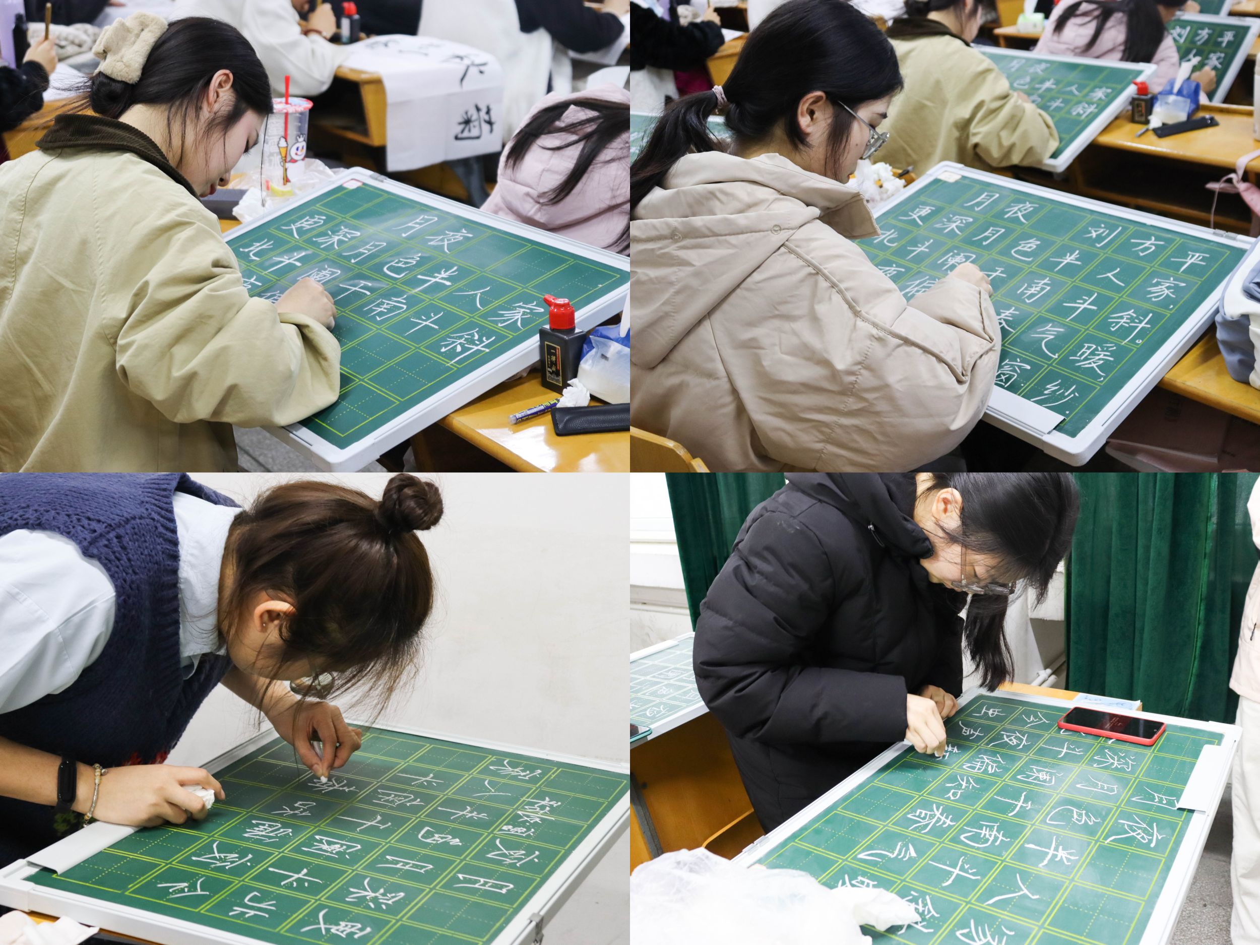赛中,教科学子屏息凝神,挥洒笔墨,认真打磨一笔一划,结构的疏密、点画的轻重、运笔的疾缓……方寸之间展示书写风范,笔尖之下传递文化之美,一幅幅作品跃然纸上,让人赏心悦目,充分展现了作为新时代师范生的风采及教学基本功。比赛结束后,工作人员将参赛作品统一收集交至评委处。