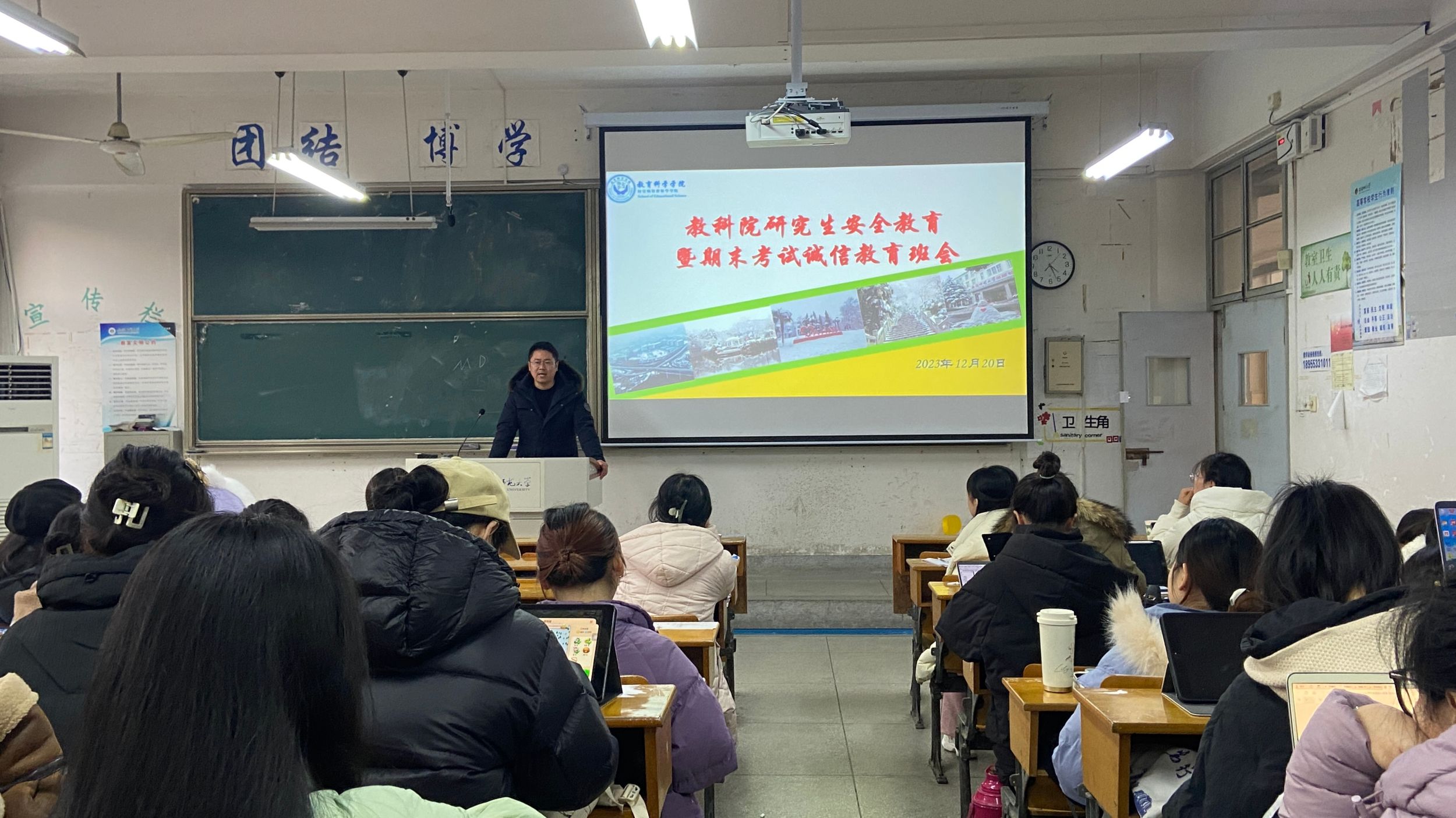 为落实公司老员工护航行动计划的要求,进一步强化员工的安全意识和诚信意识,公司于12月20日召开研究生安全与诚信教育主题班会,2022级与2023级研究生参加。班会由辅导员莫大贡老师主讲。