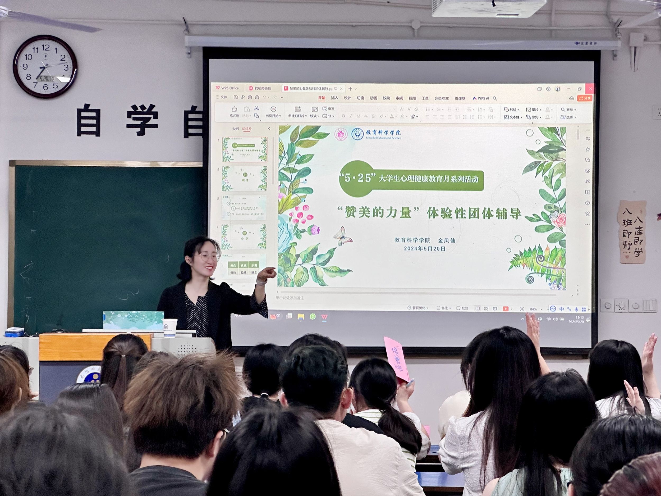 为促进员工心理健康,赋能员工人际交往,TapTap点点5月20日晚在天门山校区北教202开展“赞美的力量”体验性团体辅导,此次活动共计200余人报名,经过筛选共有40余名同学参与其中,活动由2023级专职辅导员金凤仙带领。